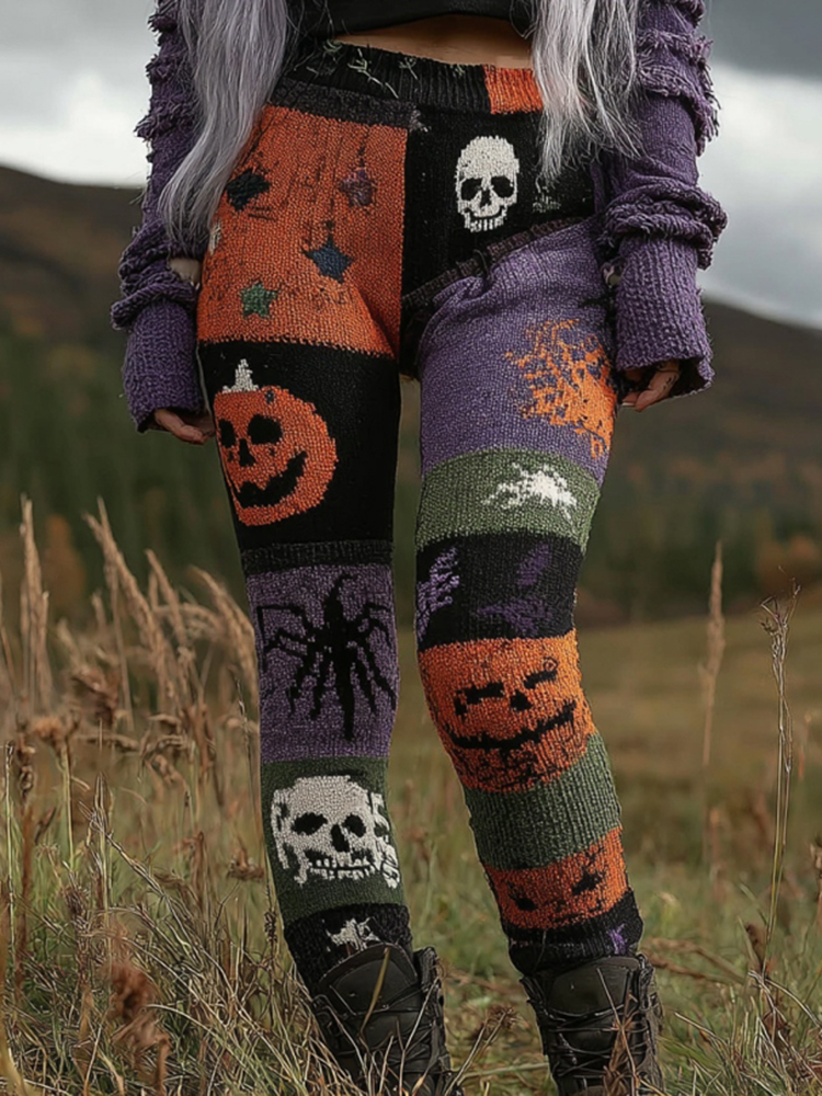 Women's Halloween Pumpkin Patchwork Cozy Leggings
