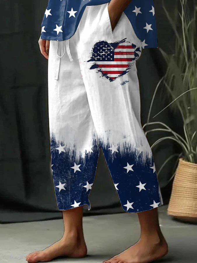 Women's Independence Day Love American Flag Element Print Casual Wide Leg Pants