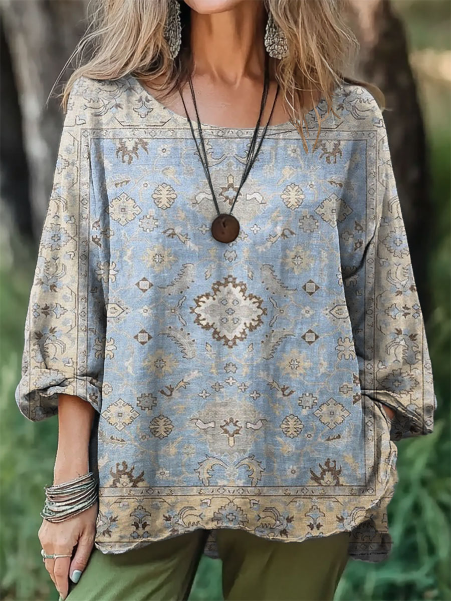 Women's Light Pattern Printed Casual Long Sleeve Comfortable Cotton Shirt