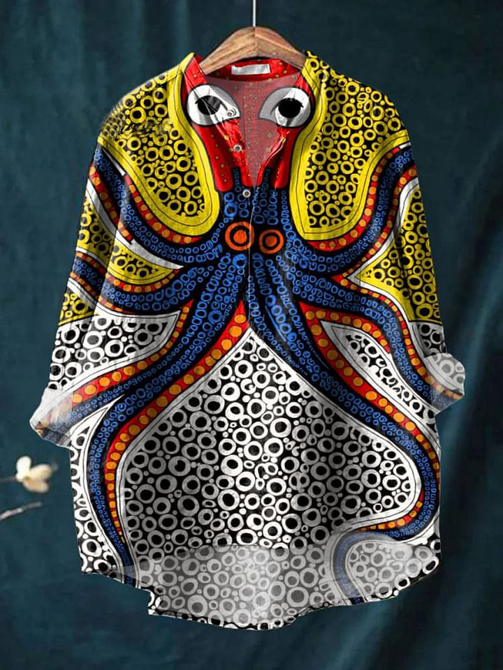 Women's Octopus Dot Art Print Casual Long Sleeve Comfortable Cotton Shirt