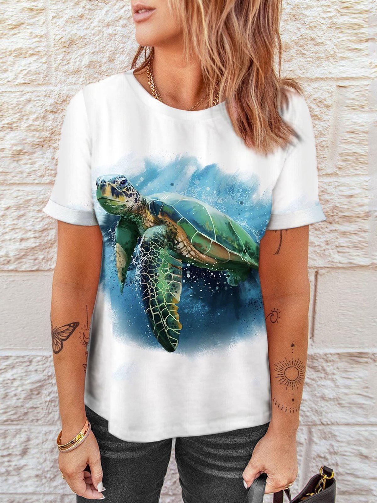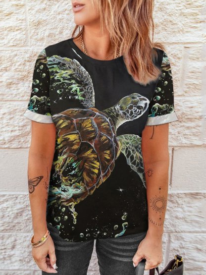 Women's Sea Turtle Print Casual Tee