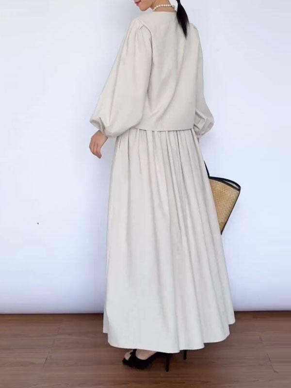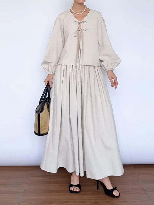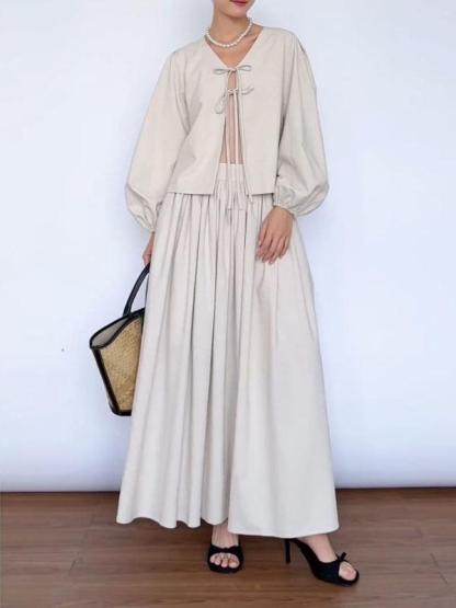 Women's Solid Color Bow Tie Top and Skirt Two-piece Set