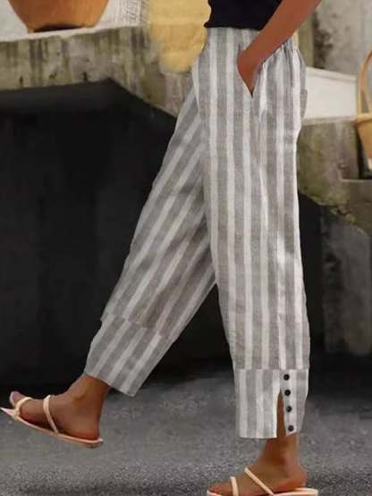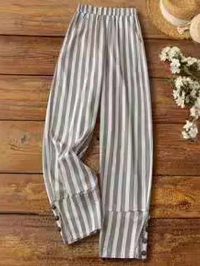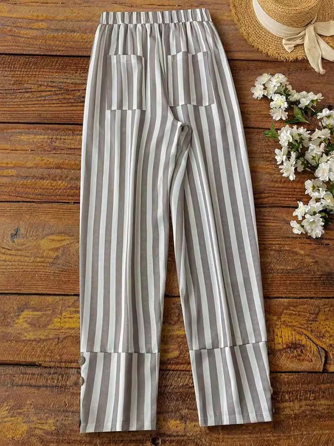 Women's Striped Button-Down Casual Pants