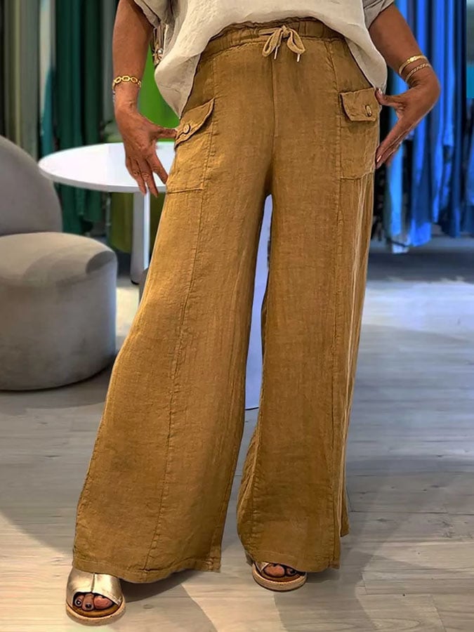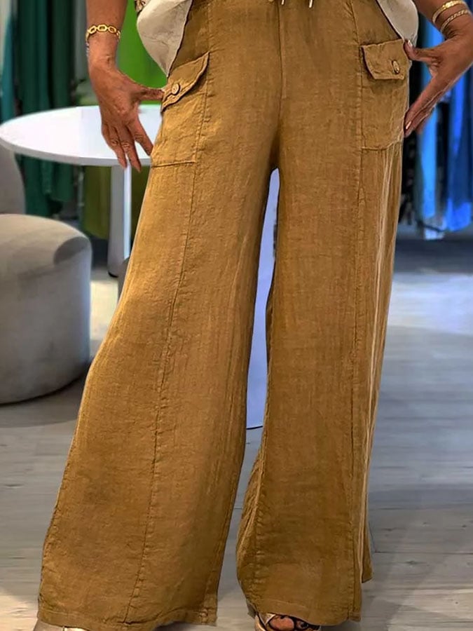 Women'S Vintage Cotton And Linen Pocket Casual Pants