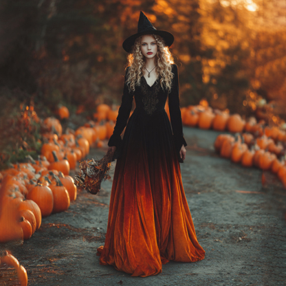 Women's Vintage Halloween Gradient Art Comfy Velvet Maxi Dress
