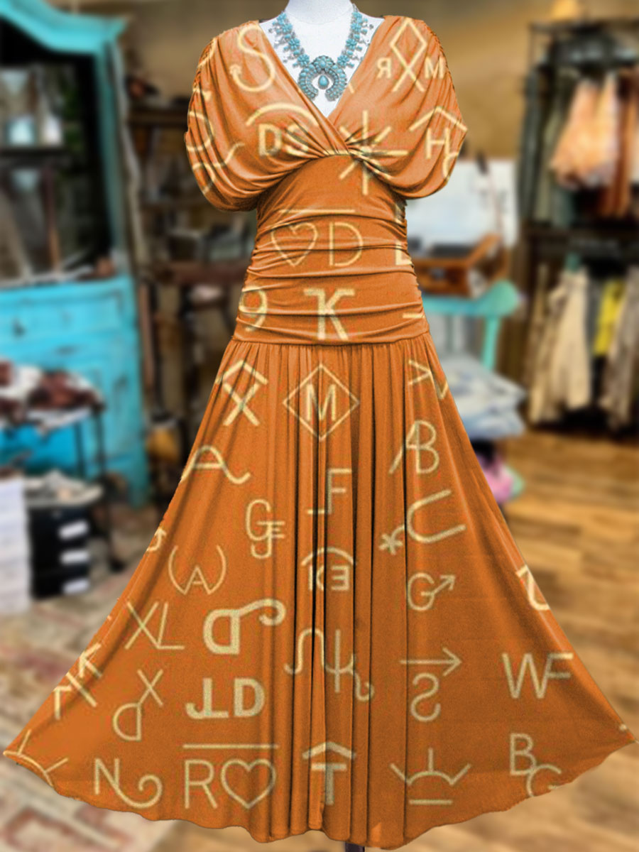 Women's Vintage Cattle Branding Print Stretch-mesh Maxi Dress