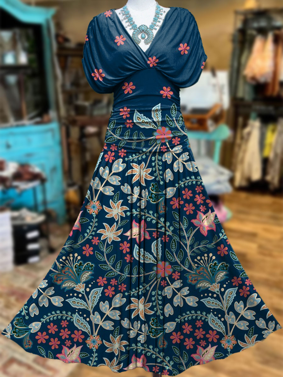 Women's Vintage Boot Stitch Print Stretch-mesh Maxi Dress