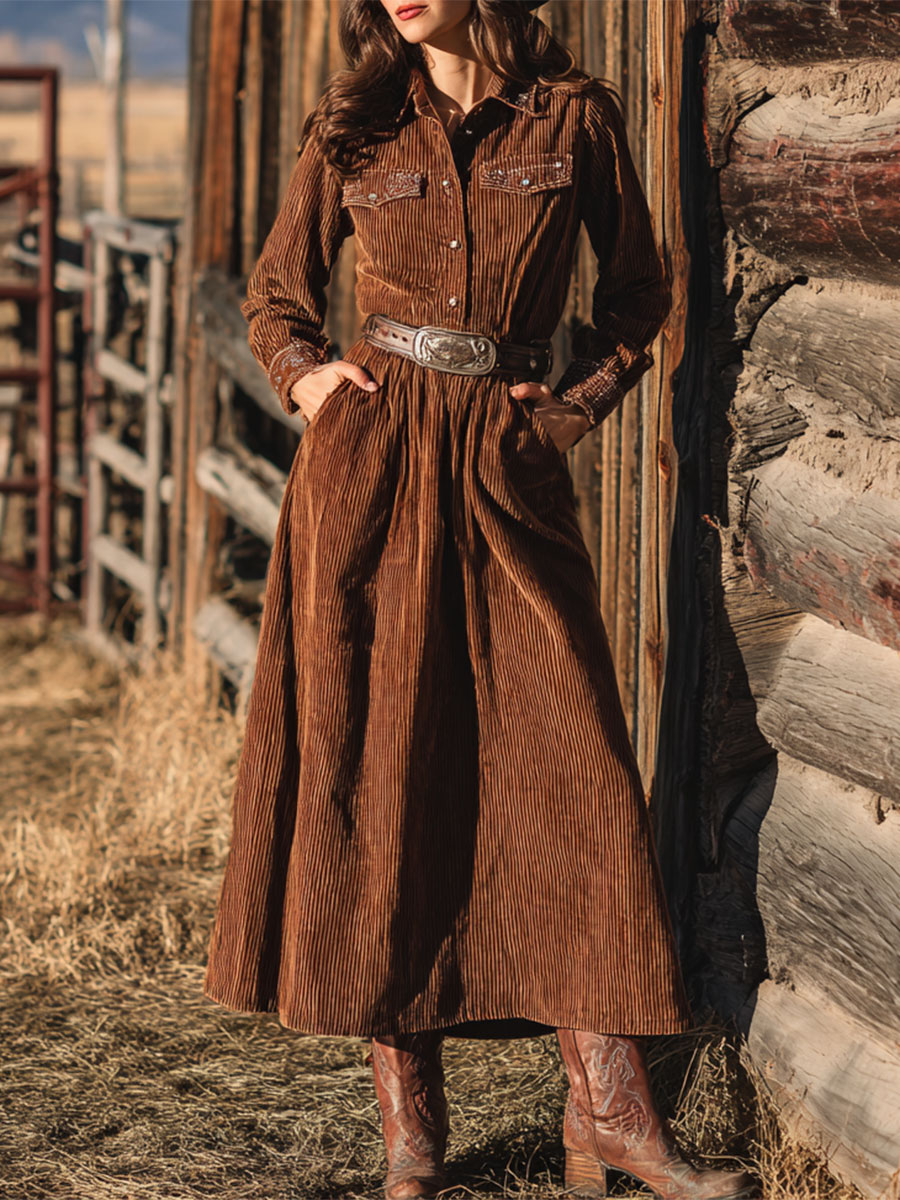 Women's Casual Long-sleeved Corduroy Dress