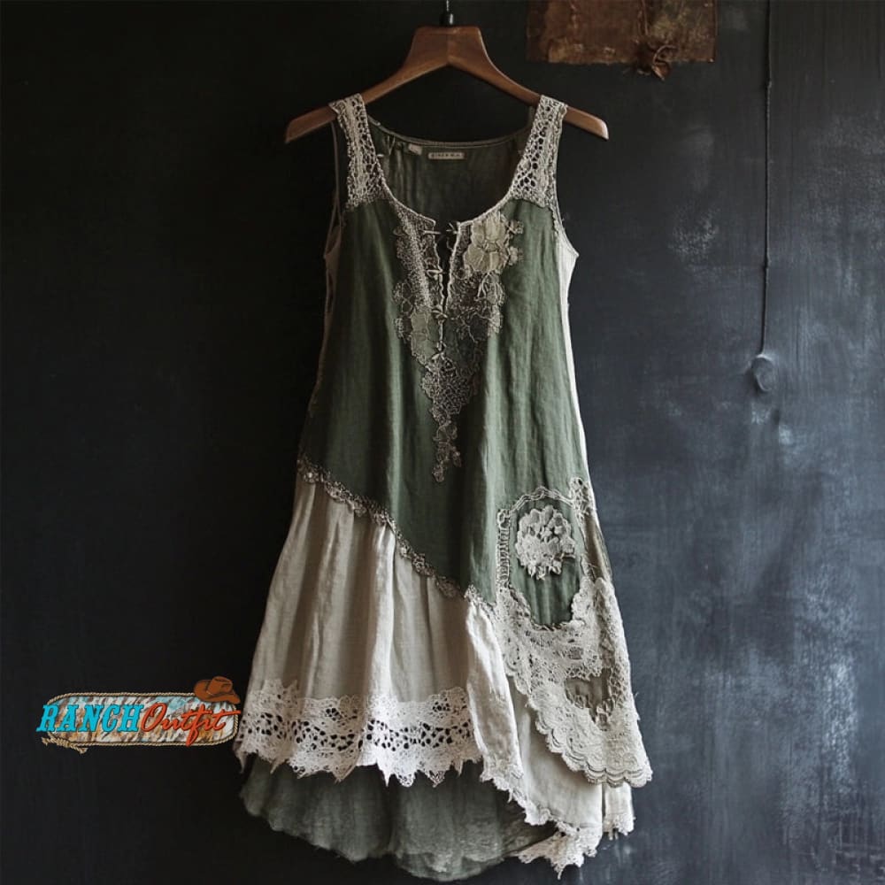 Vintage Lace Patchwork Comfy Linen Tank Dress