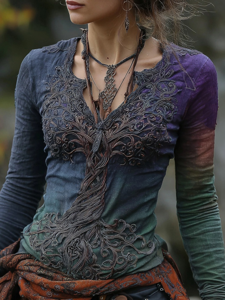 Women's Viking Tree Of Life Gradient Linen T-shirt