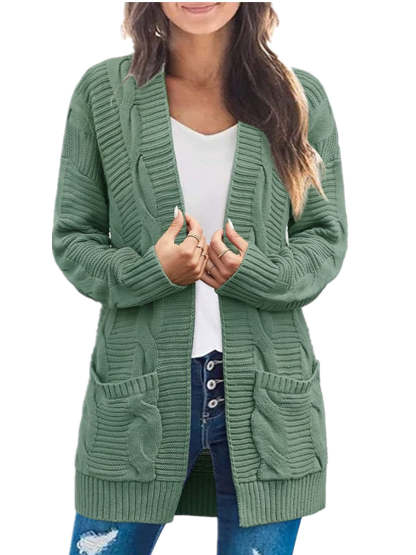 2022 Women's Long Sleeve Cable Knit Cardigan Sweaters