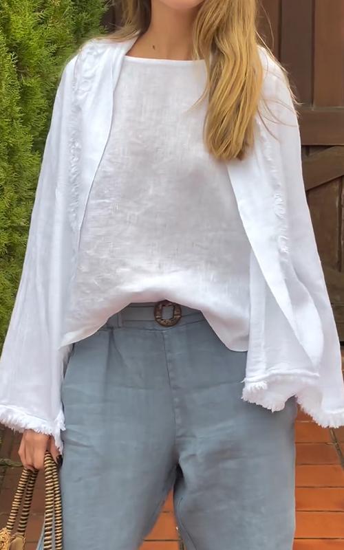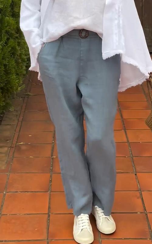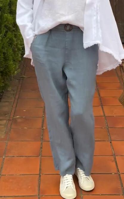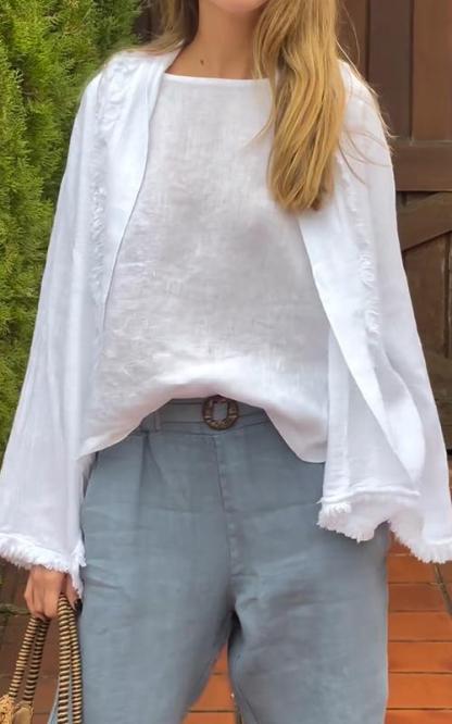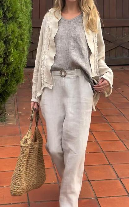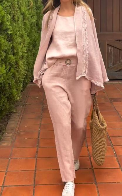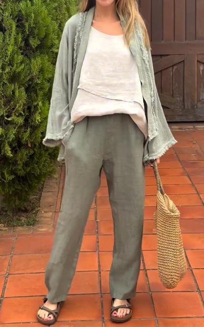 Casual Round Neck Solid Color Cotton and Linen Two-piece Suit