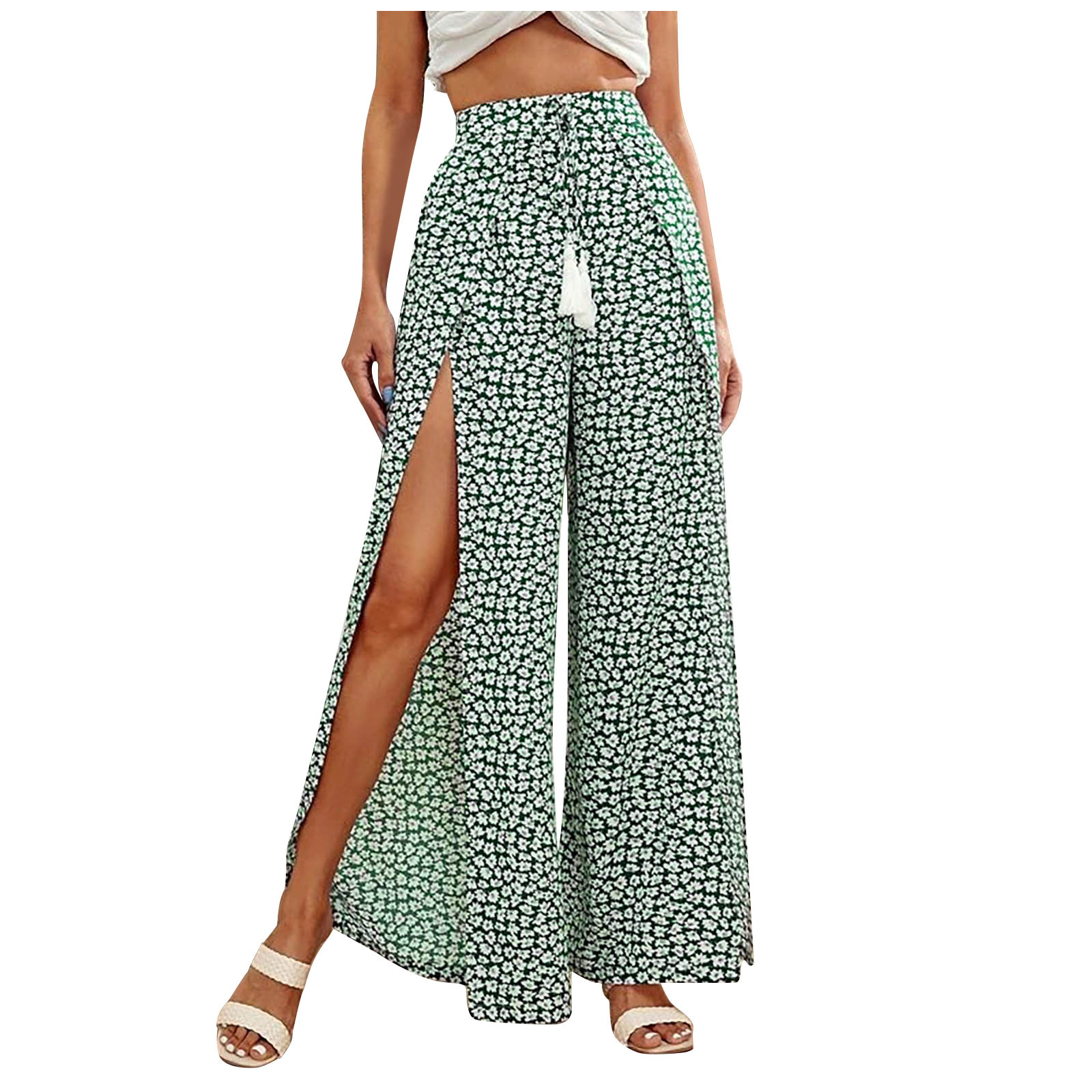 Ladies Office Fashion High Waist Solid Color Elegant Slit Lace Wide Leg Pants