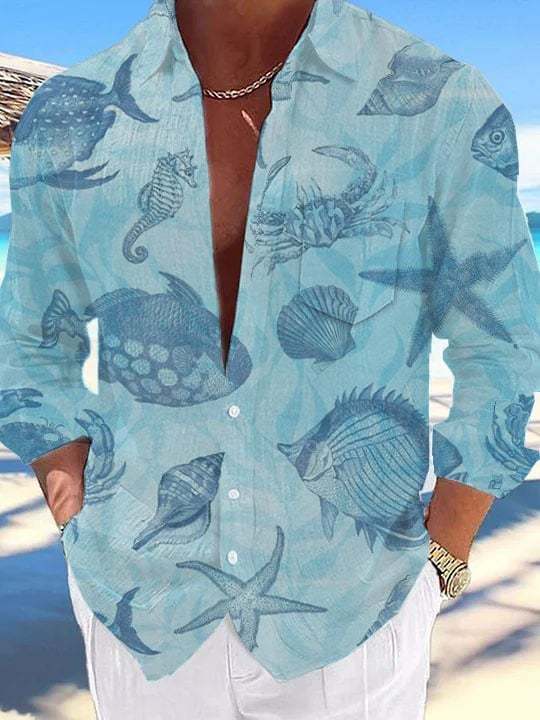 Men's Resort Beach Wave Floral Long Sleeve Shirt