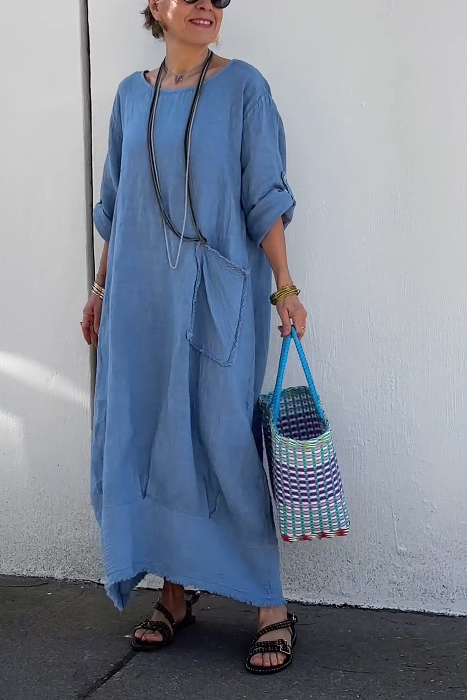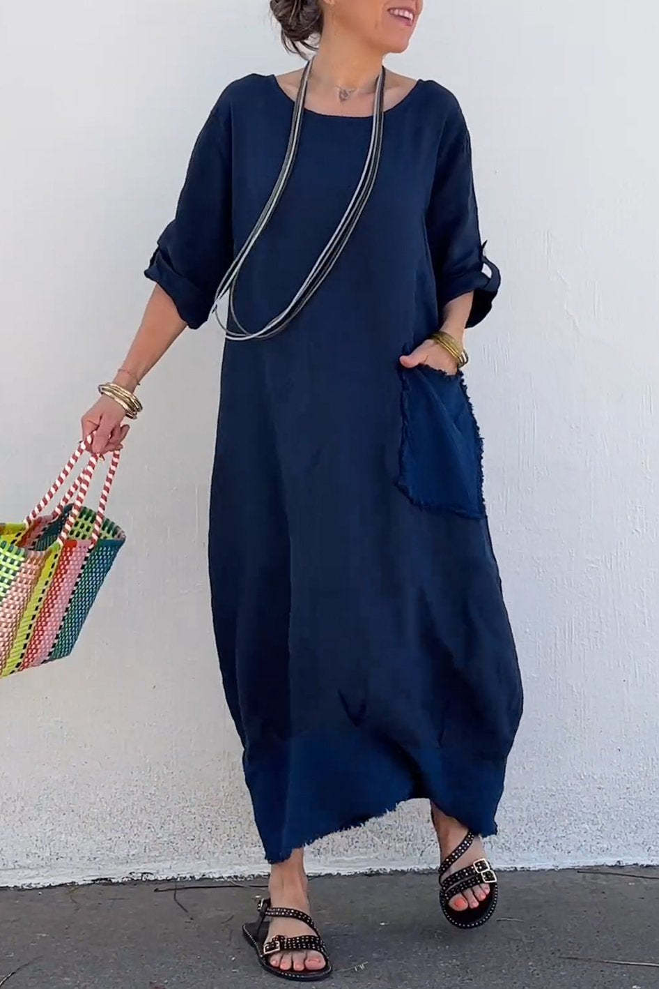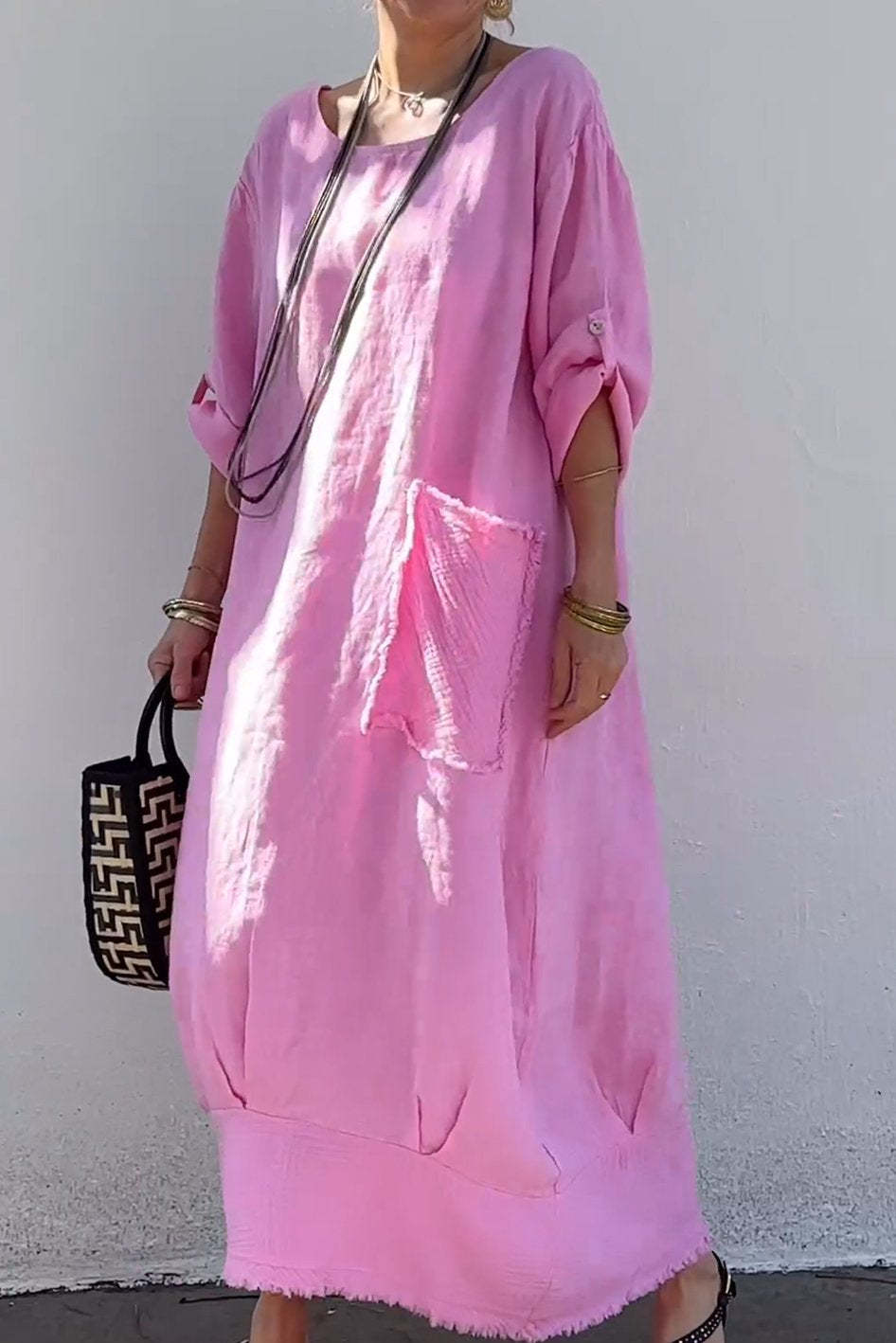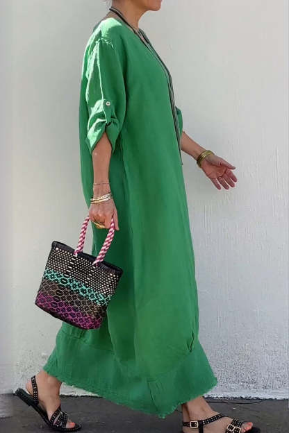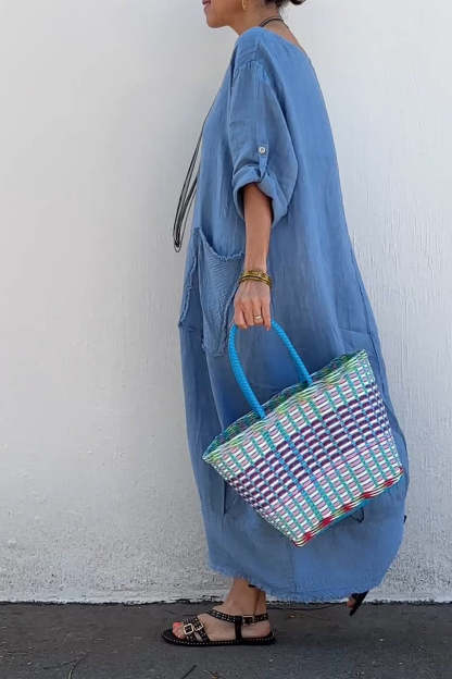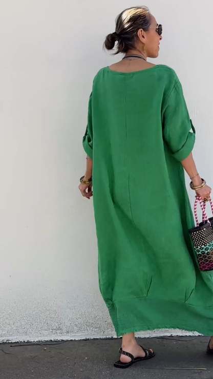 Round neck cotton and linen casual dress
