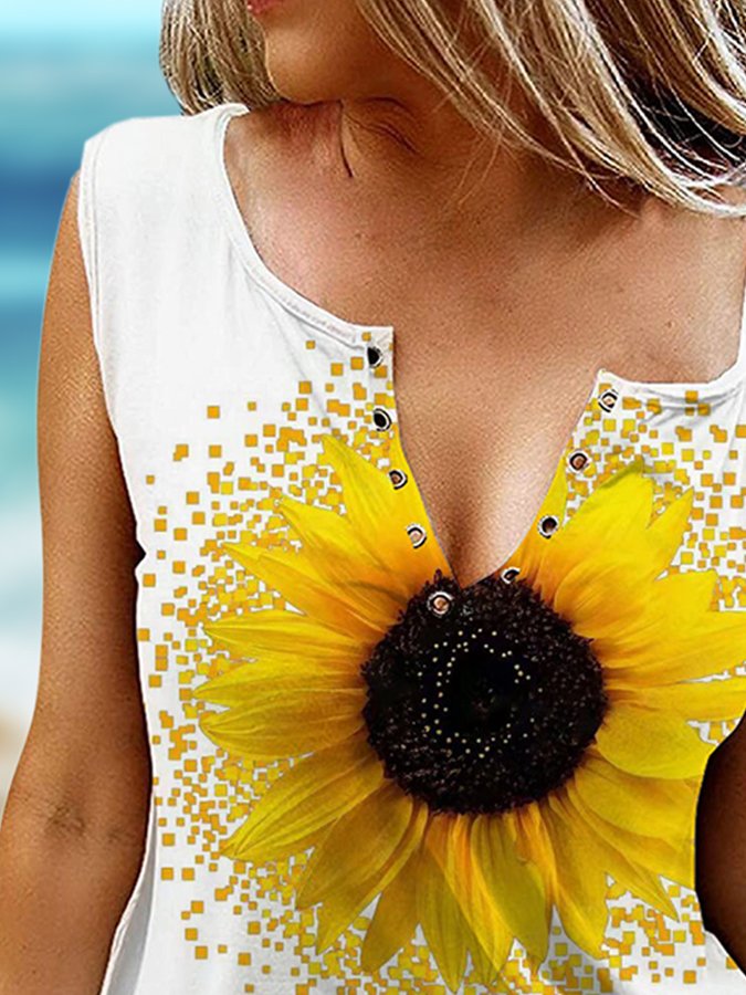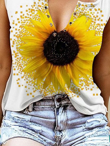 Sunflower Print V-Neck Tank Top