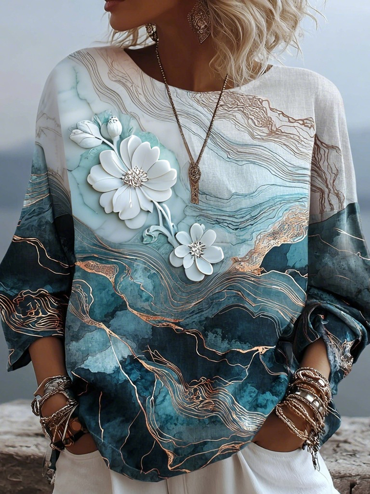 Vintage Gradient Marble Texture Pattern Art Linen Three-quarter Sleeves Shirts