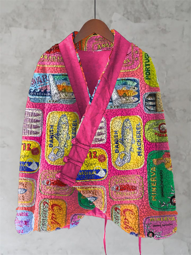 Vintage Sardine Can Art Wool Kimono Cardigan
