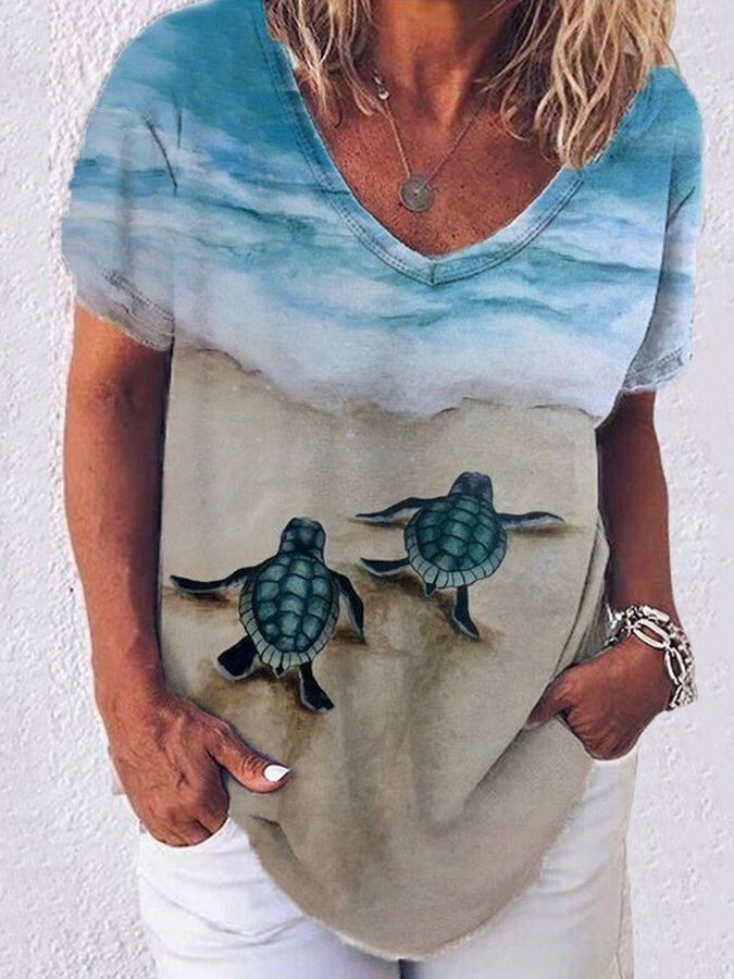 Women's Beach Turtle Print T-shirt