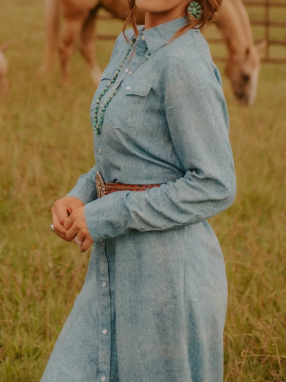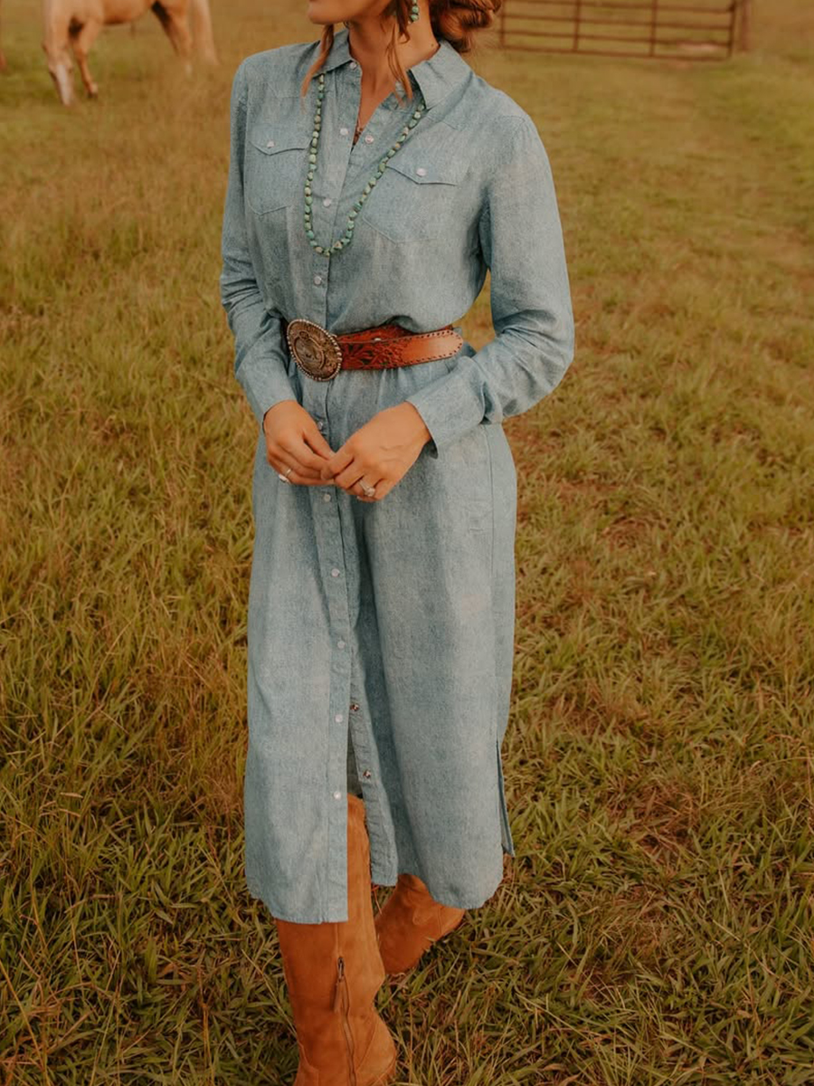 Women's Casual Long Sleeve Pocket Cotton Dress