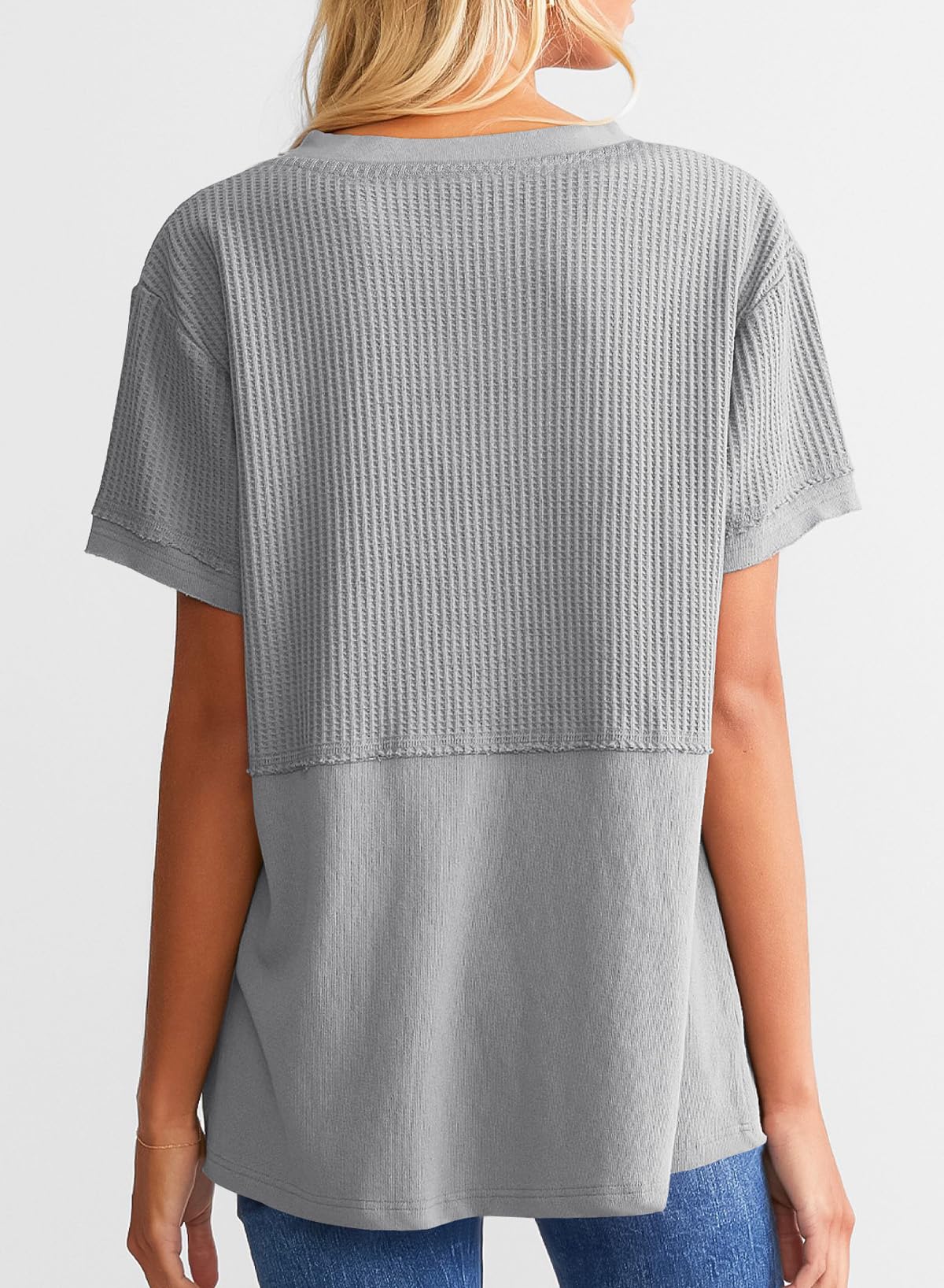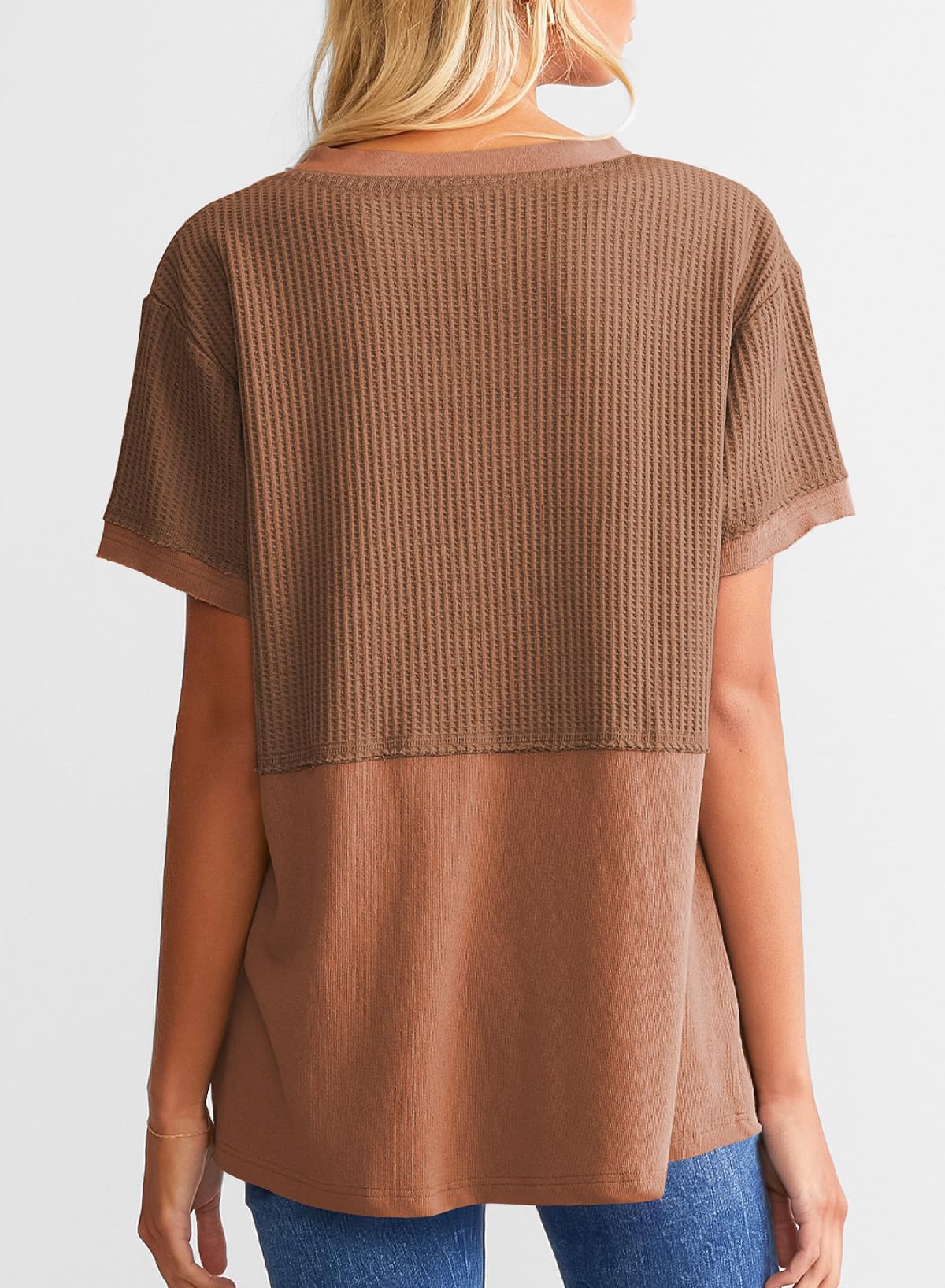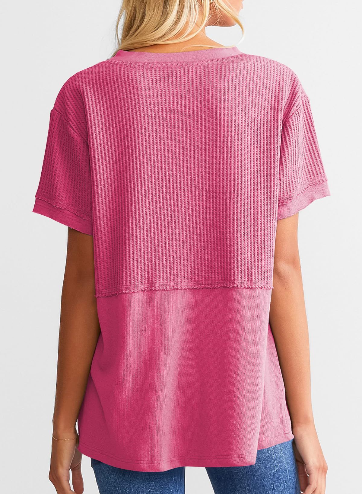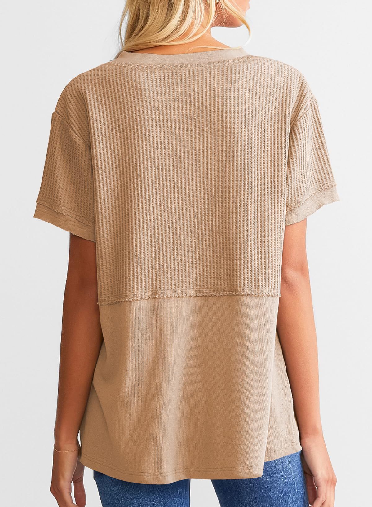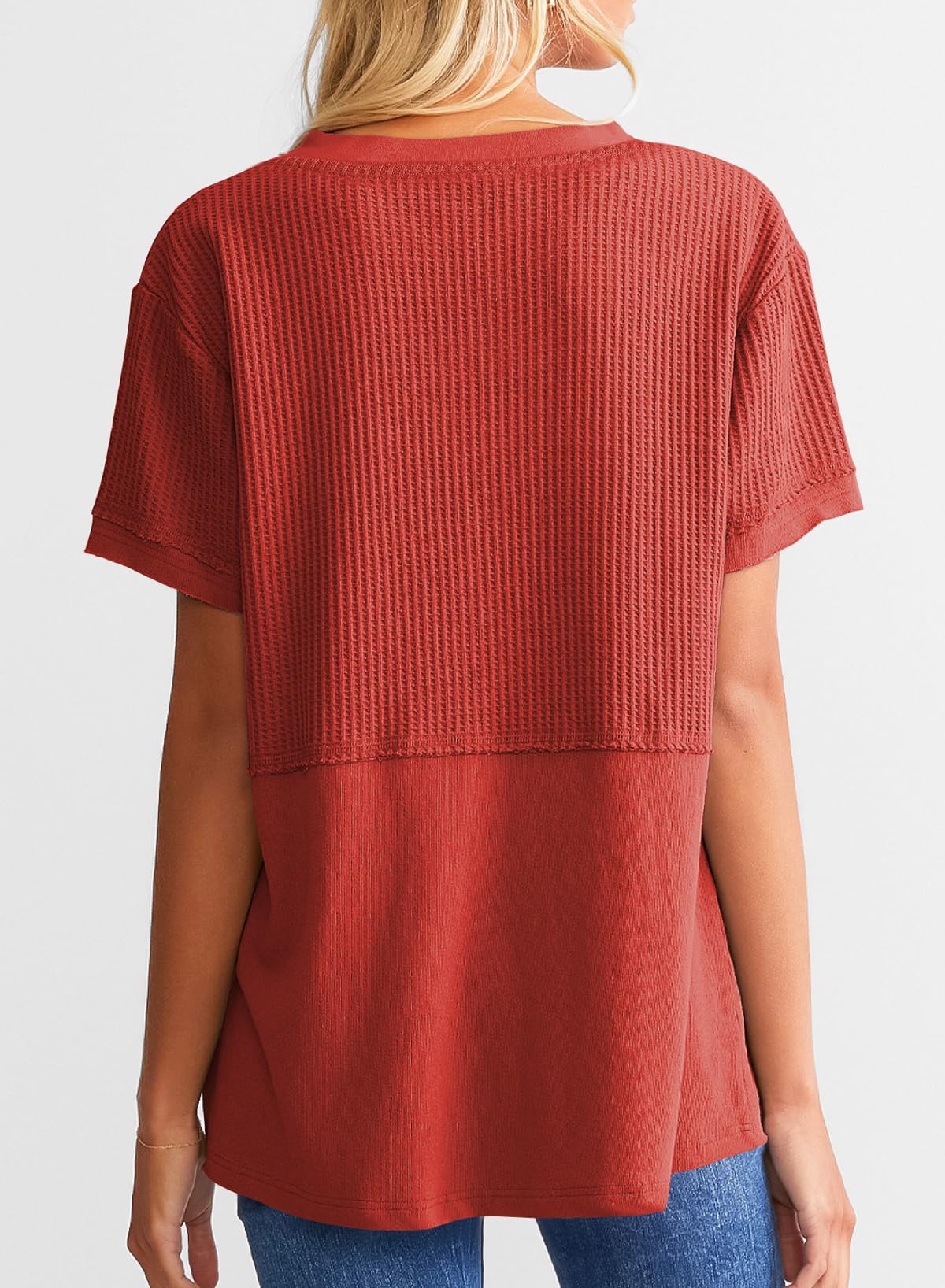 Women's Casual Waffle Knit Short Sleeve Top (Buy 2 Free Shipping)