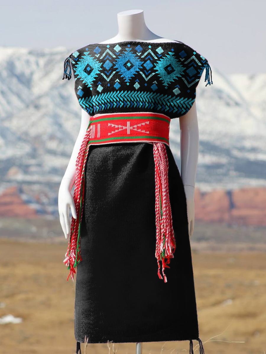 Women's Geometric Ethnic Print Sleeveless Cotton Pocket Wrap V Neck Dress