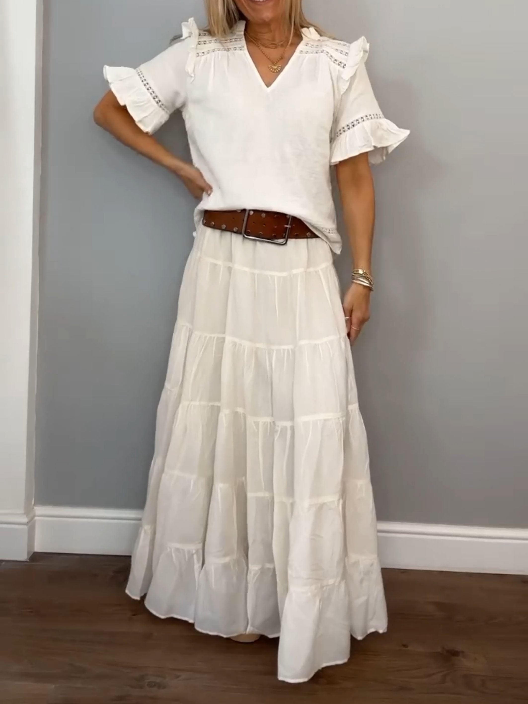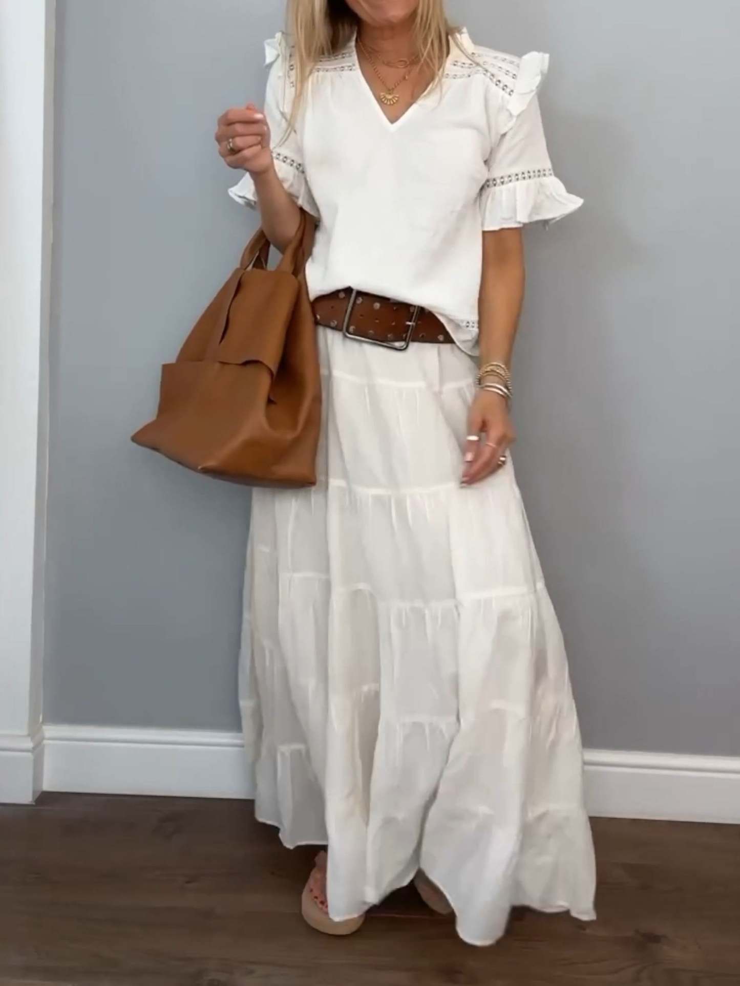 Women's Hollow V-neck Top and Skirt Two-piece Set