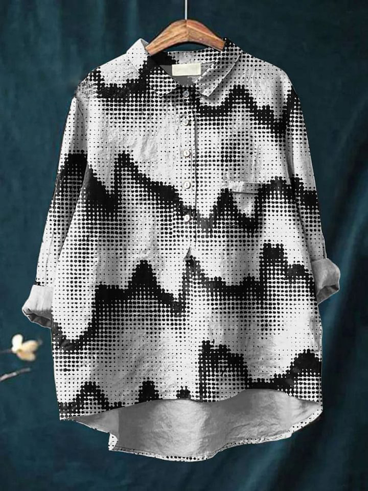 Women's Line Wave Art Print Casual Cotton And Linen Shirt