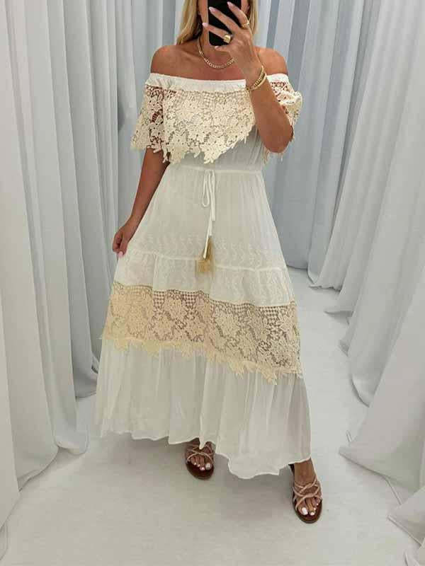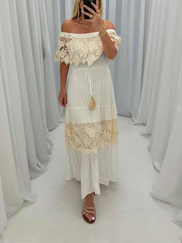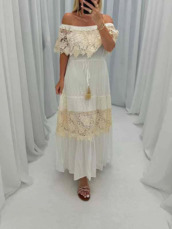Women's One Shoulder Hollow Embroidered Dress