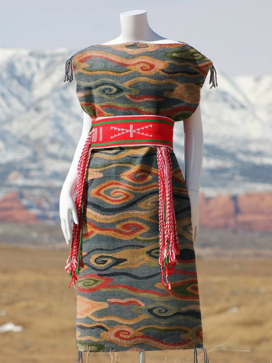Women's Retro Colored Auspicious Clouds Sleeveless Cotton Pocket Wrap V Neck Dress