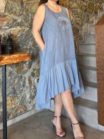 Women's Round-neck Sleeveless Printed Dress