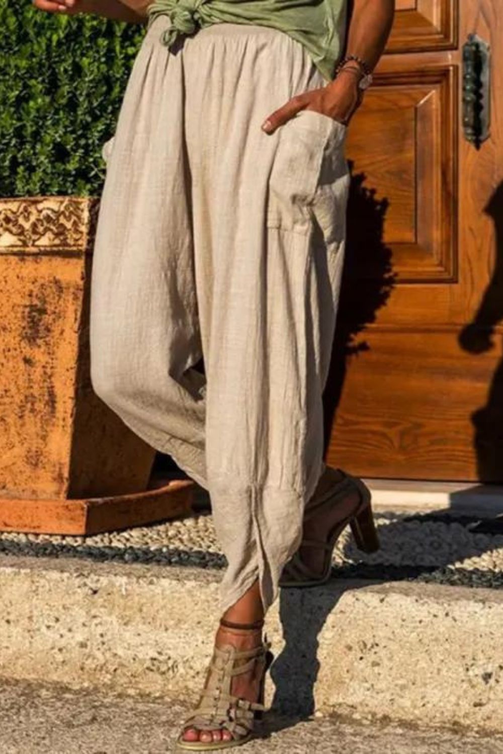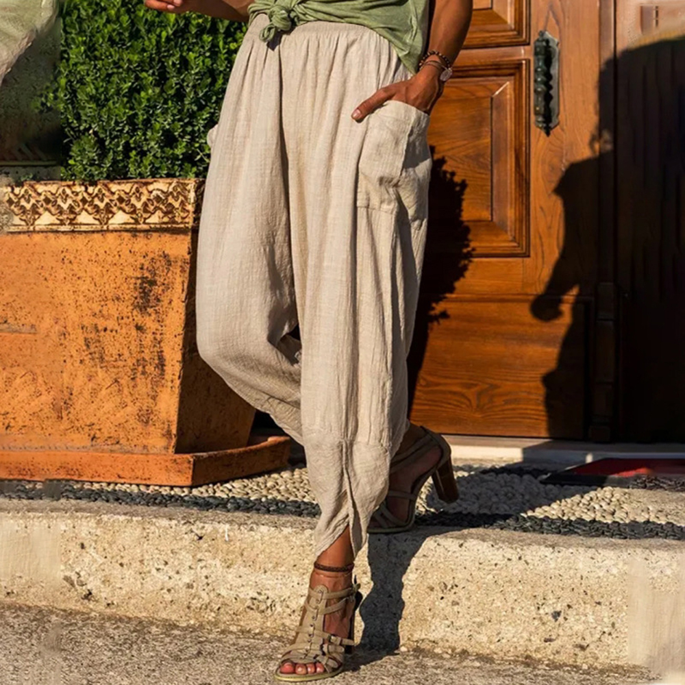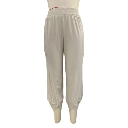 Women's Summer Casual Breathable Solid Color Elastic Wide Leg Pencil Pants