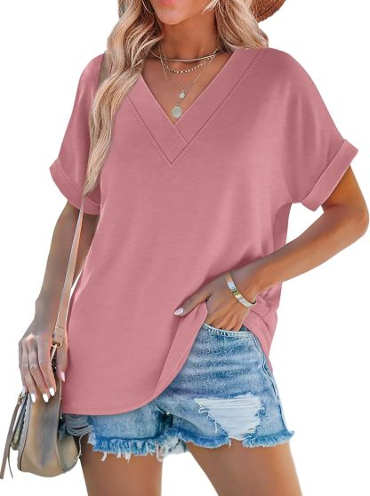 Women's Summer V Neck Short Sleeve Basic T Shirt (Buy 3 Free Shipping)