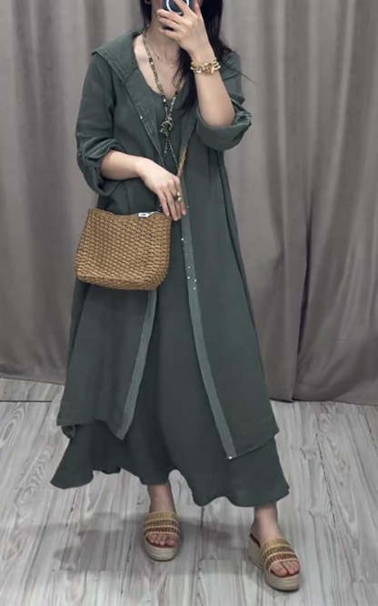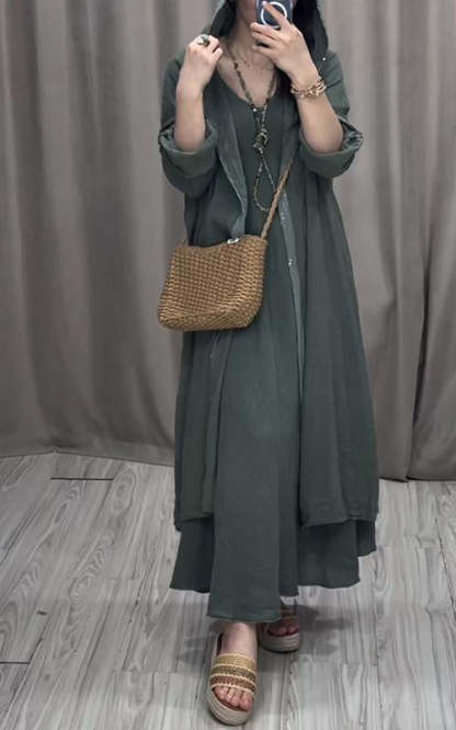 Women's V-neck Sleeveless Dress with Hooded Jacket Two-piece Suit