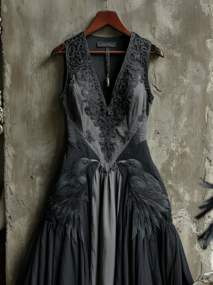 Women's Viking Raven Celtic Knot Linen Maxi Dress