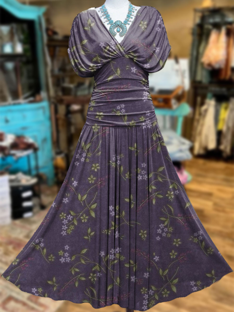 Women's Vintage Floral-print Stretch-mesh Maxi Dress