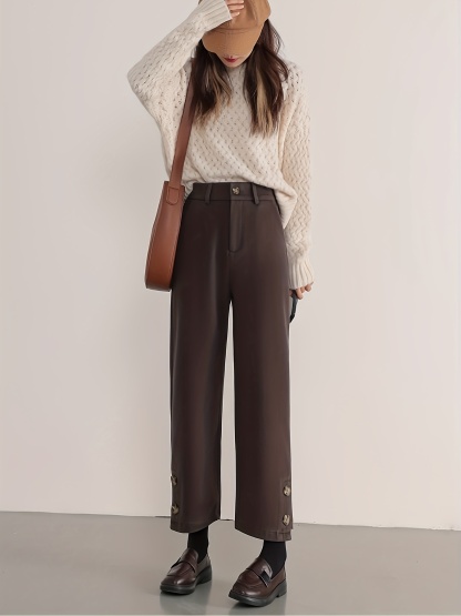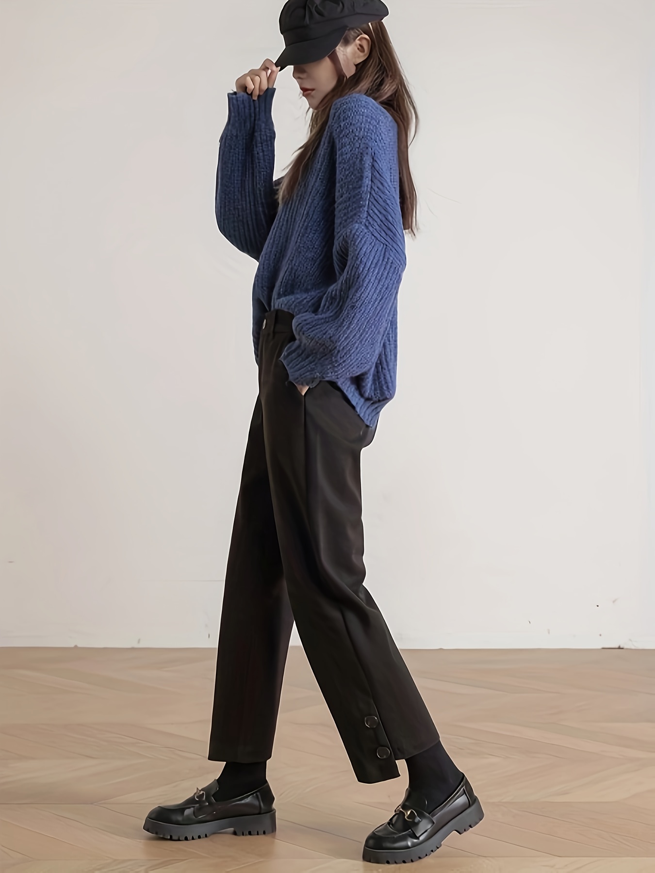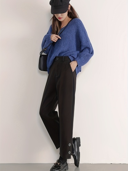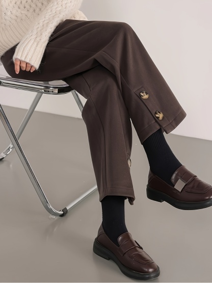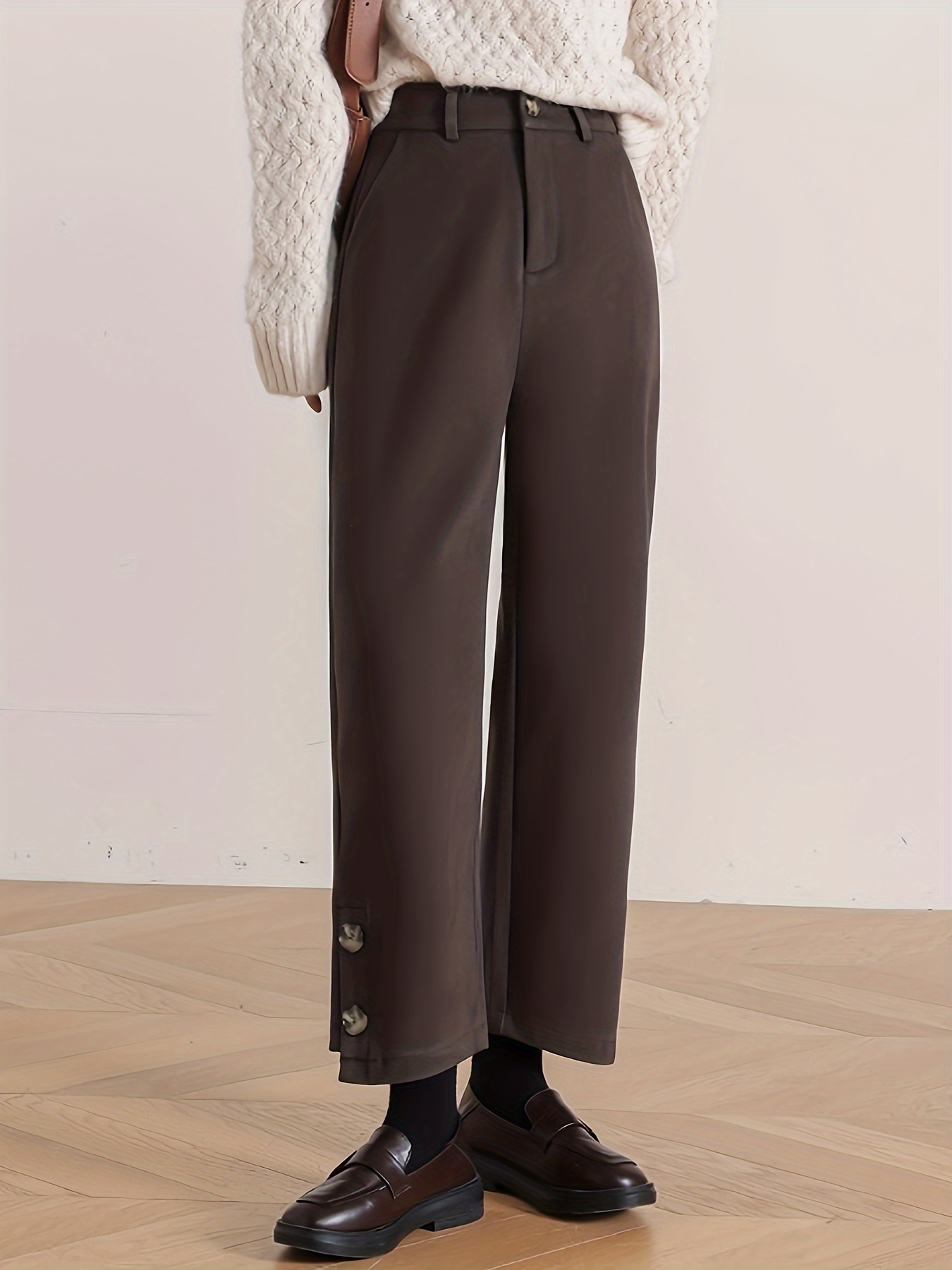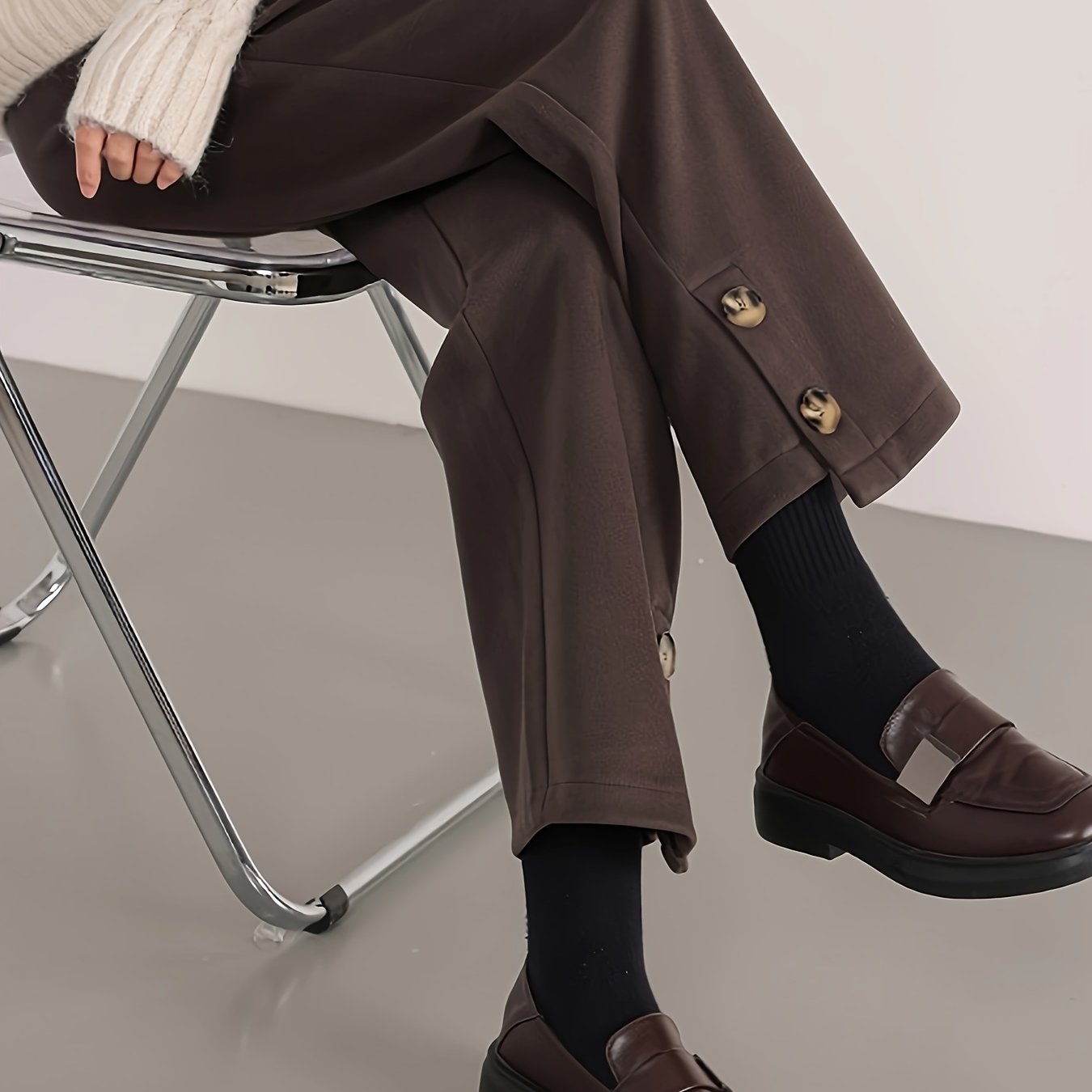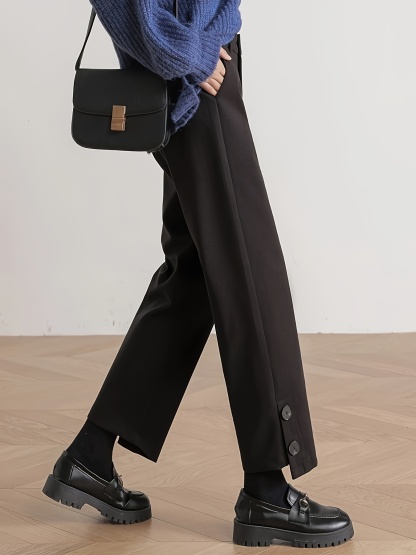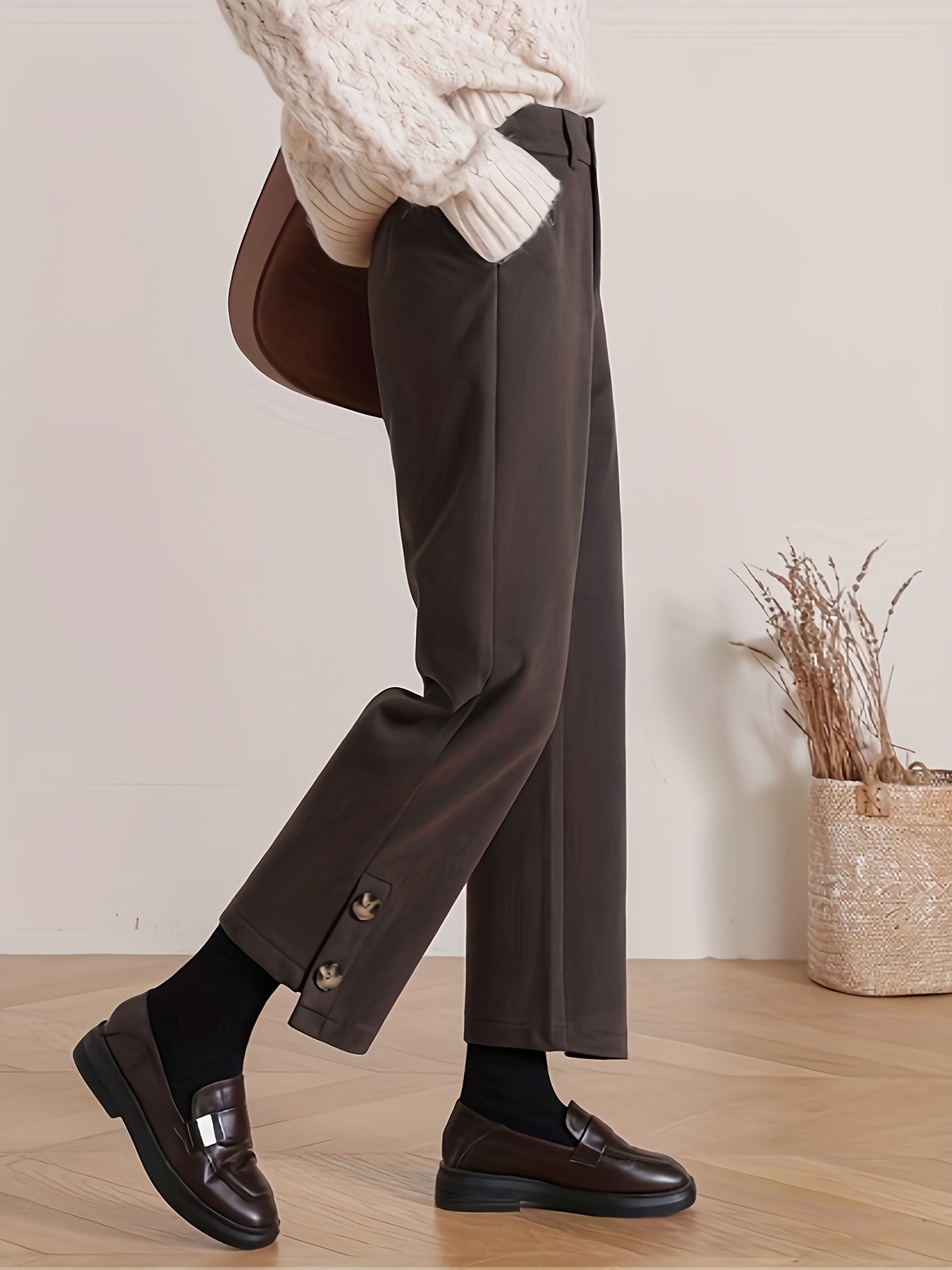1pc Elegant Women'S Polyester Straight Leg Pants, Solid Color, Button Detail, Woven Fabric, Fall\u002FWinter Collection - Versatile Suit Trousers for Adults