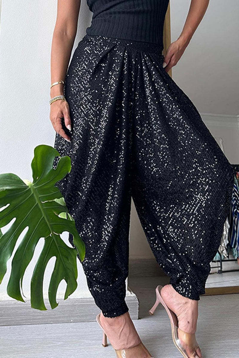 Casual Solid Sequins Sequined Loose High Waist Lantern Solid Color Bottoms