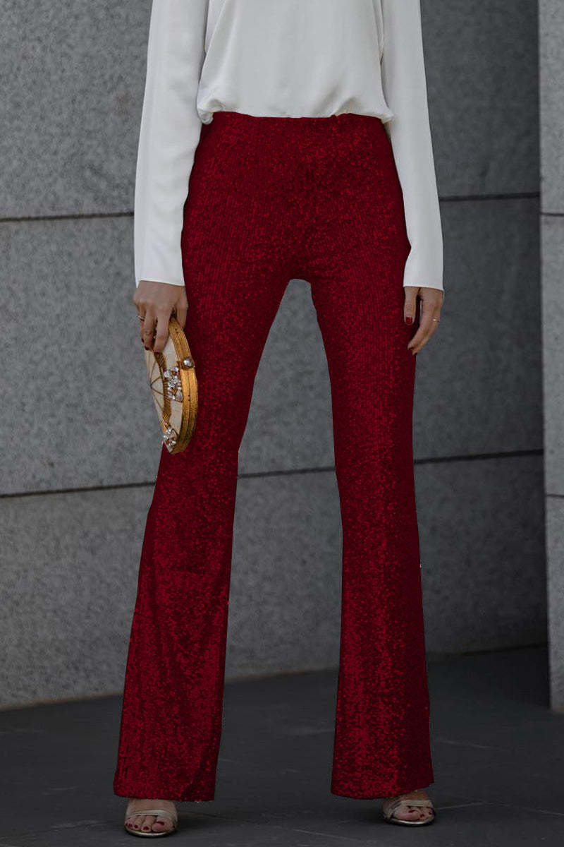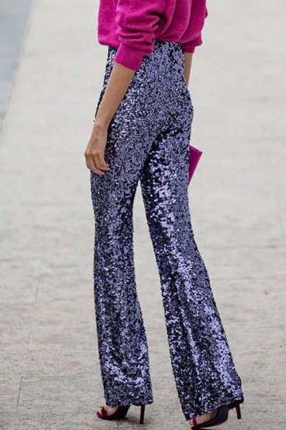 Casual Solid Sequins Straight Mid Waist Speaker Solid Color Bottoms