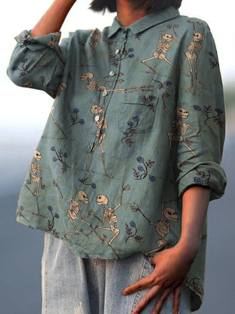 Decorative Pattern of Skeletons Dancing Pas De Deux Casual Cotton And Linen Shirt