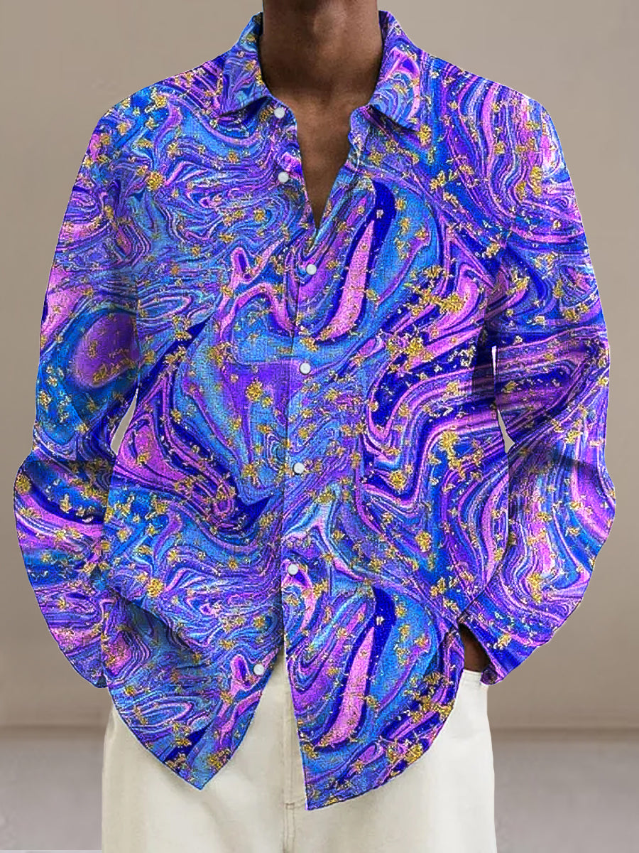 Gentleman Vintage Blue Gold Foil Textured Art Pattern Long Sleeve Shirt