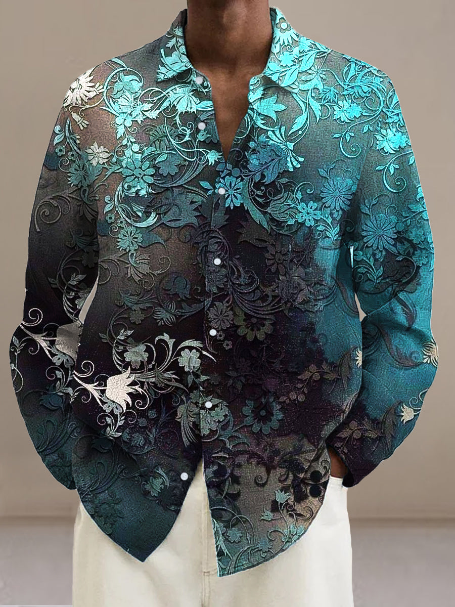 Gentleman Vintage Gradient Floral Art Print Long Sleeve Shirt