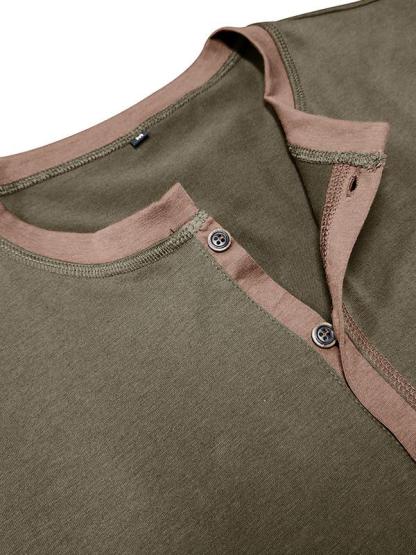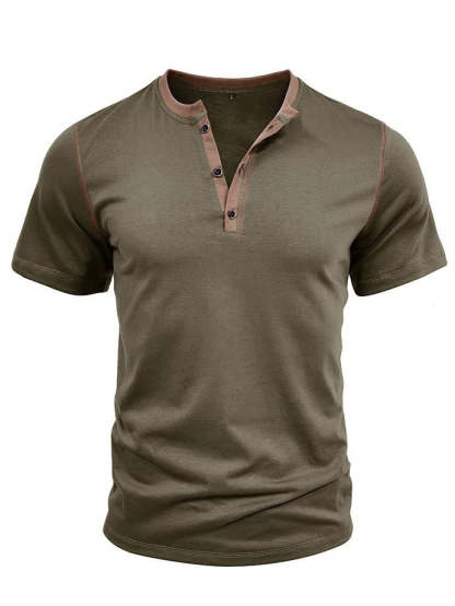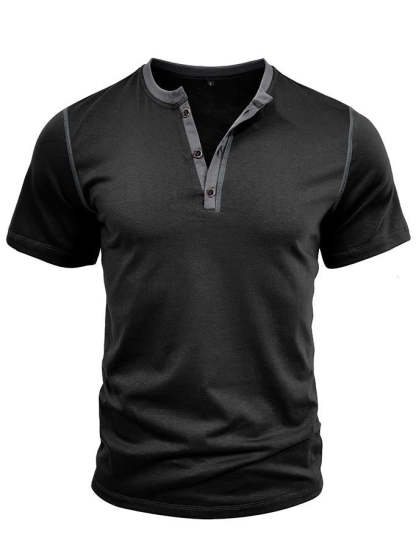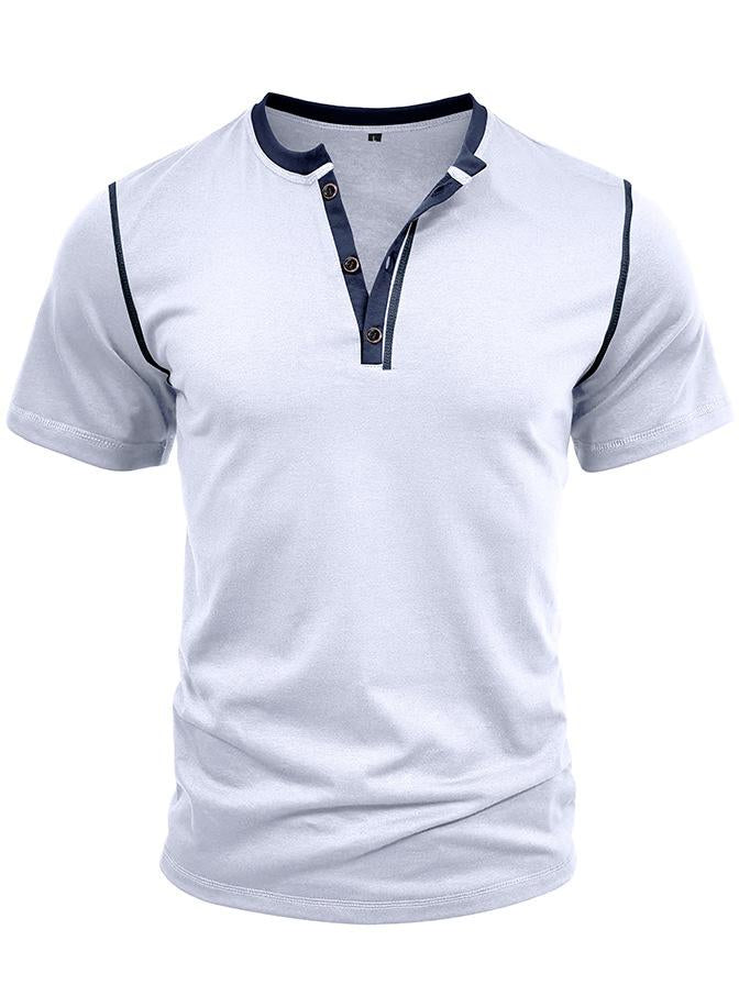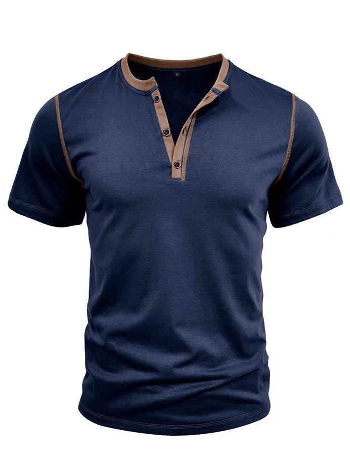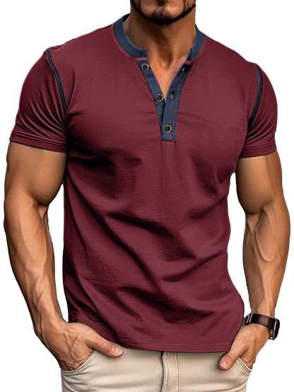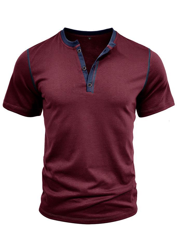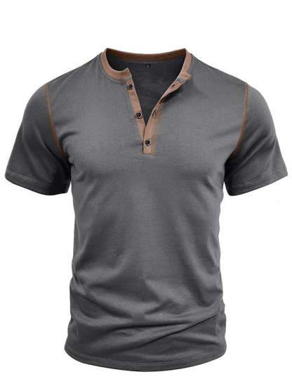 Men's Patchwork Button-down Short-sleeved Henley Shirt