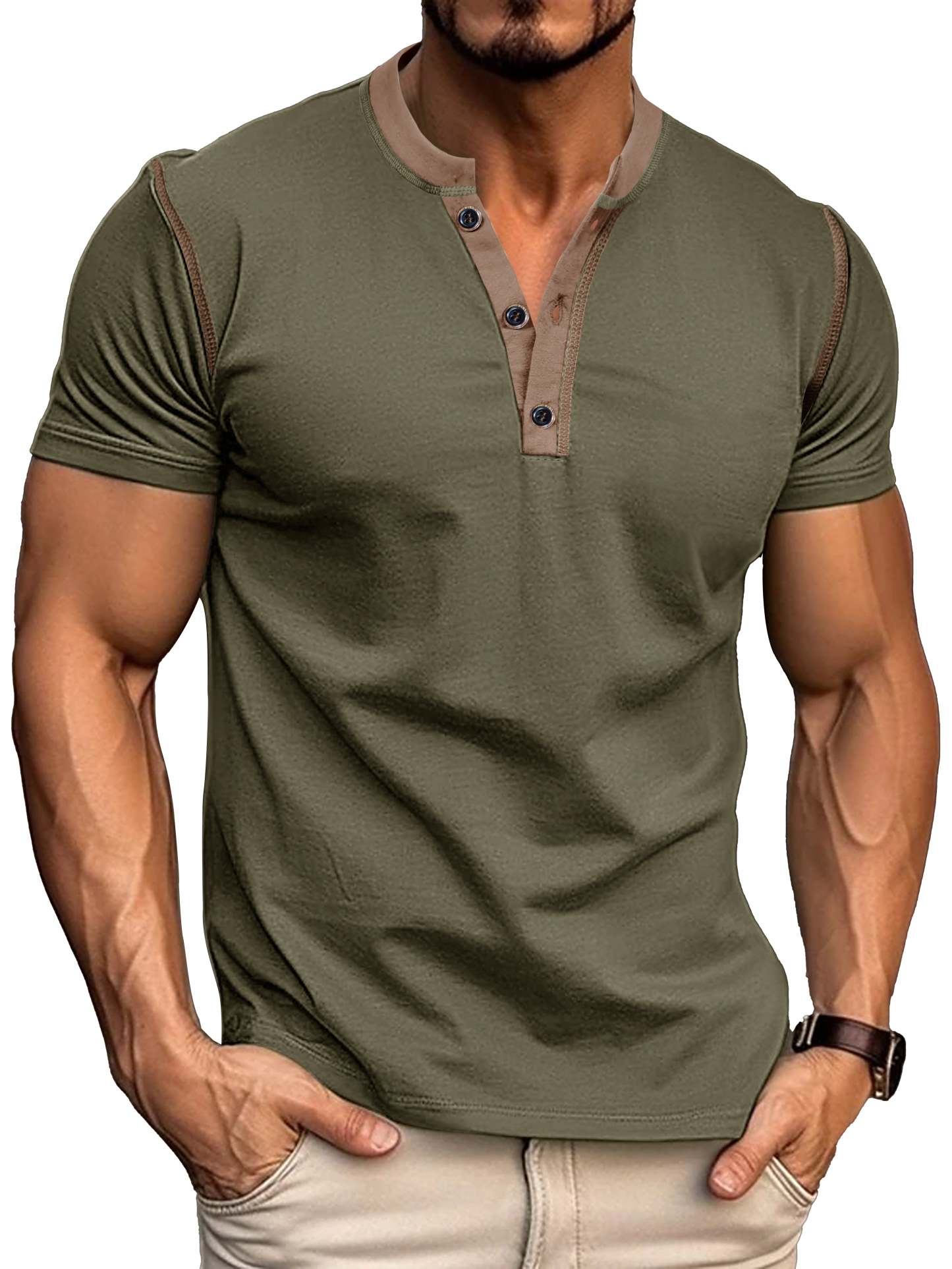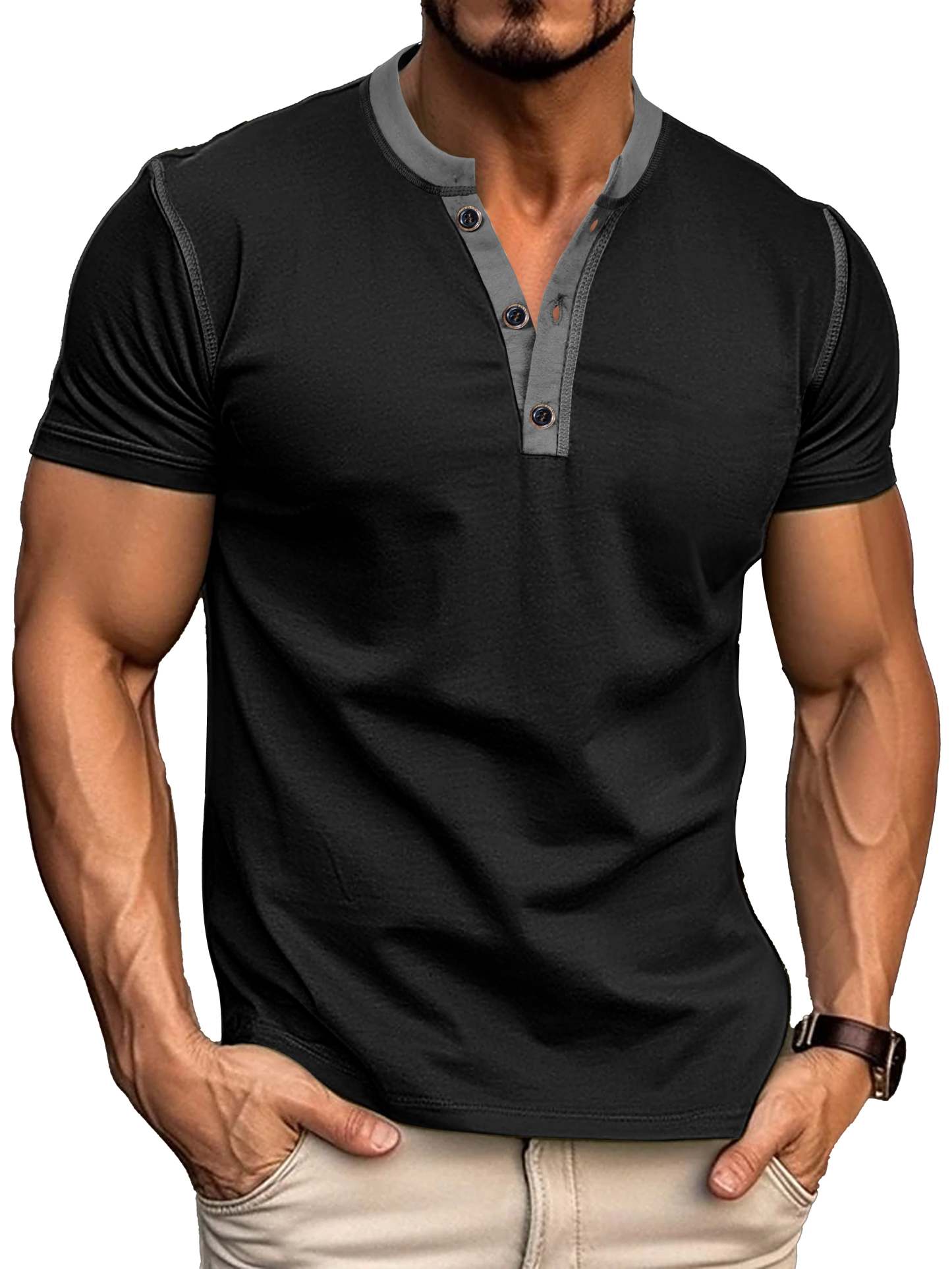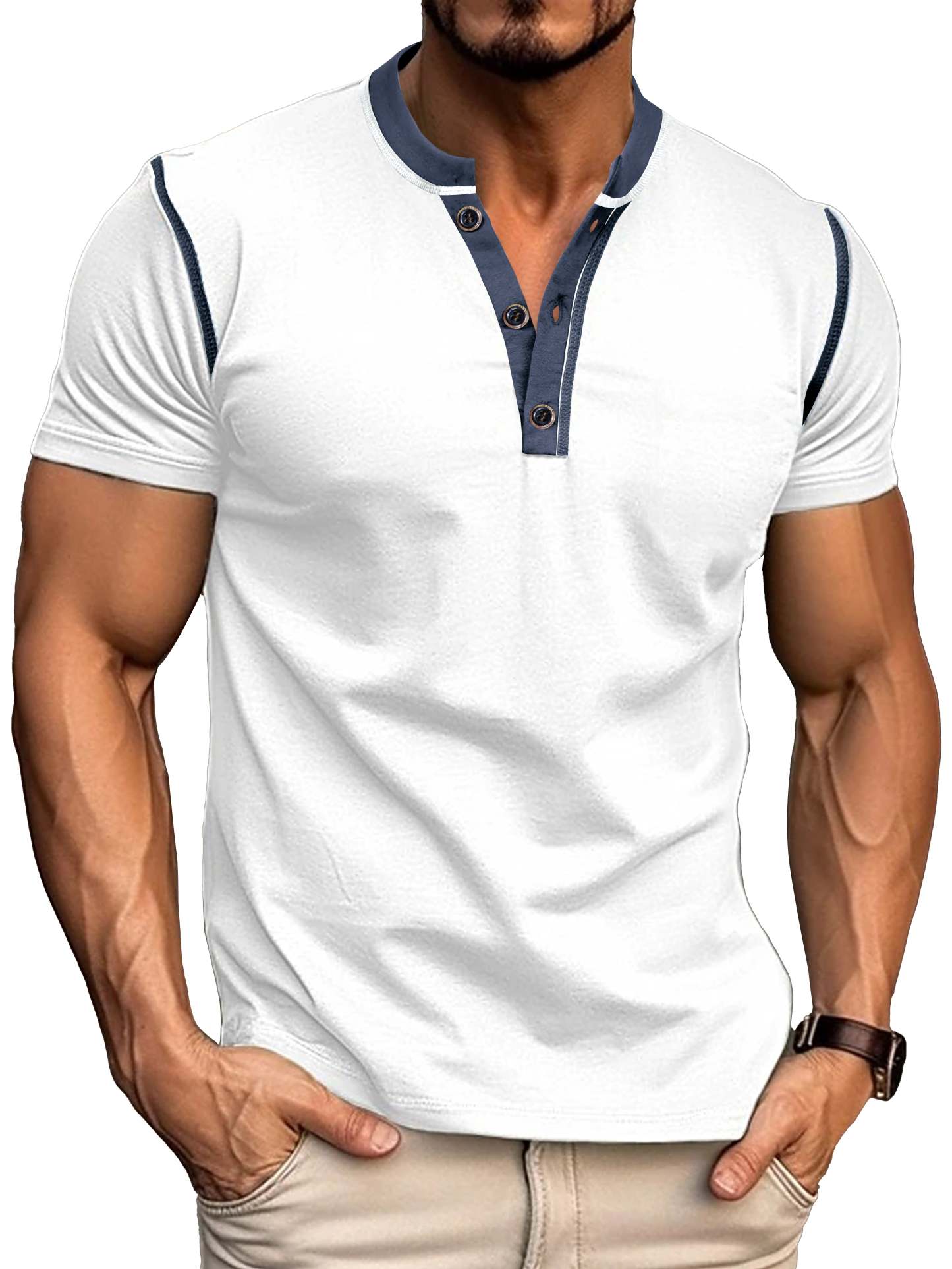 Men's Patchwork Button-down Short-sleeved Henley Shirt