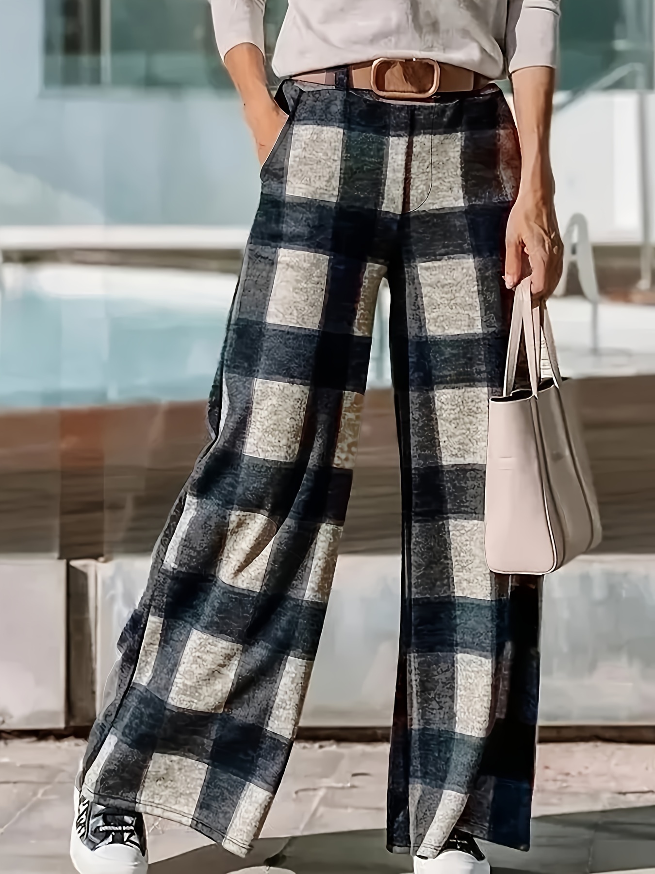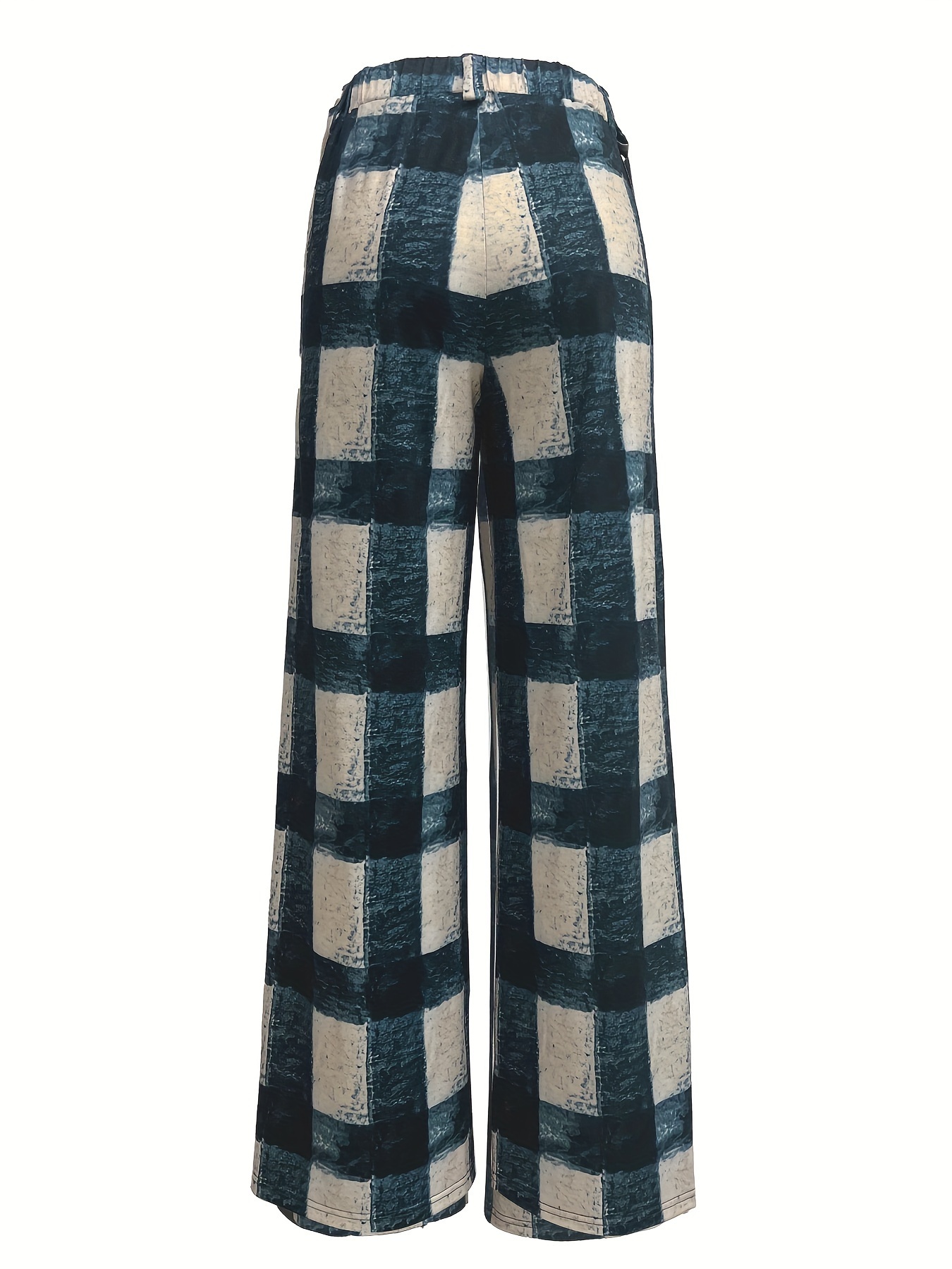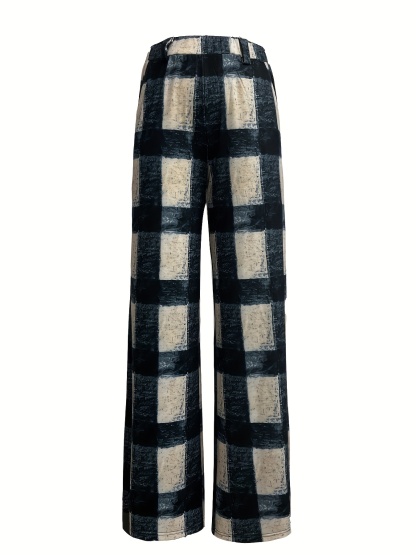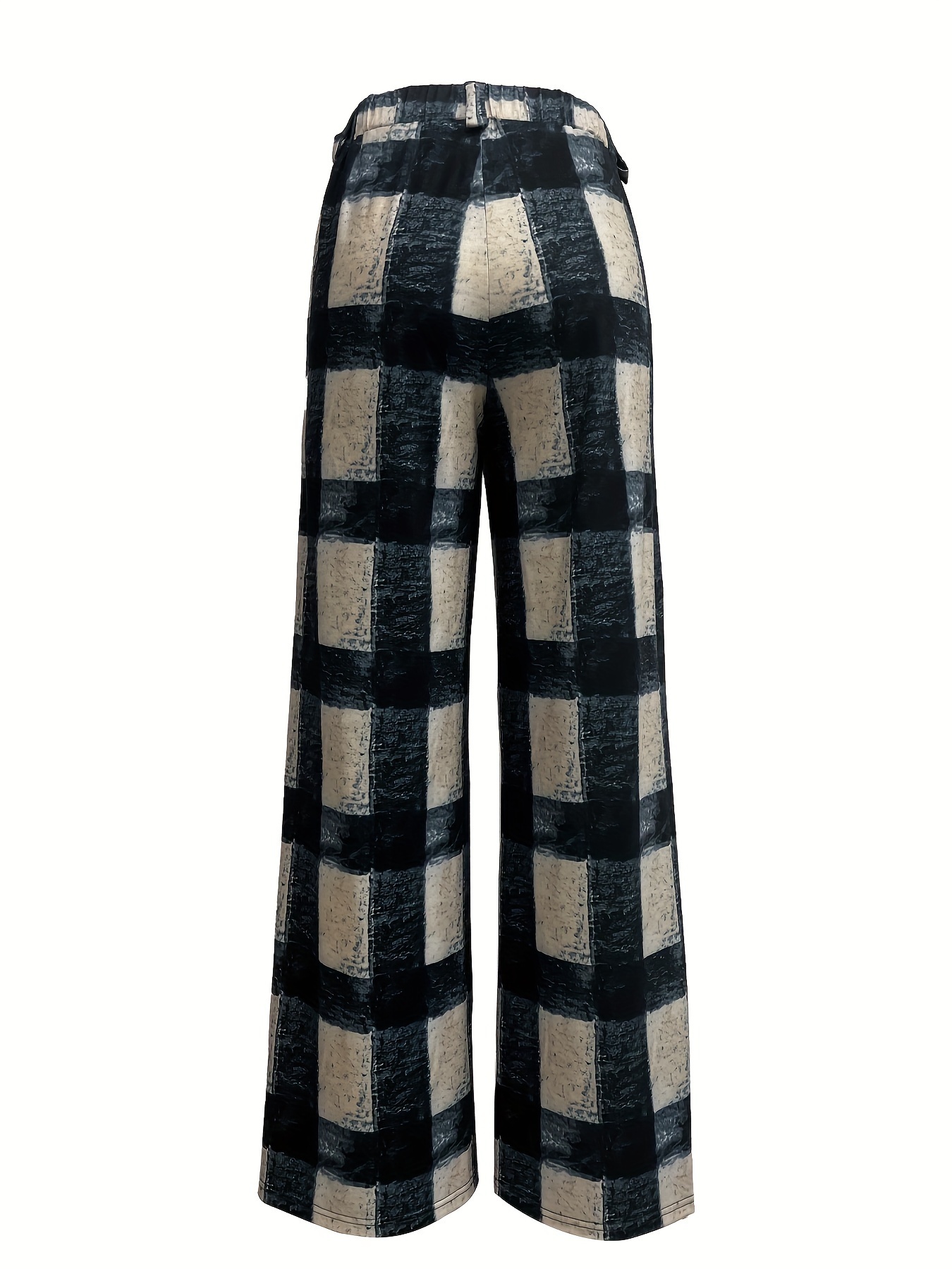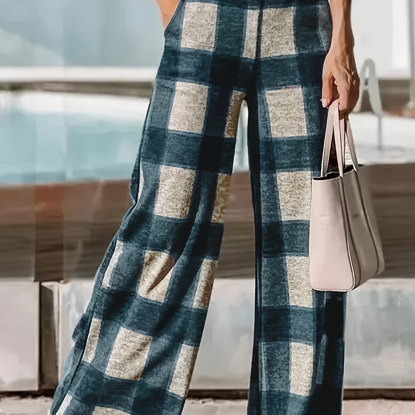 Plaid High Waist Wide Leg Pants, Casual Pants For Spring & Fall, Women's Clothing