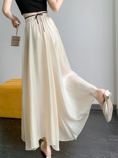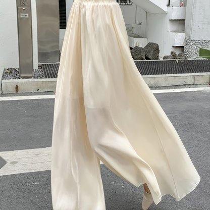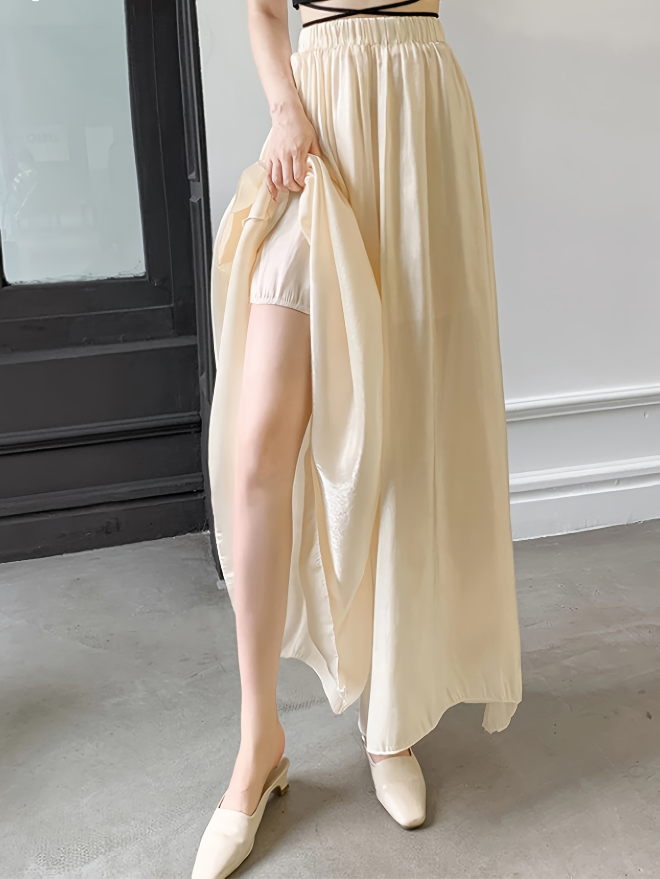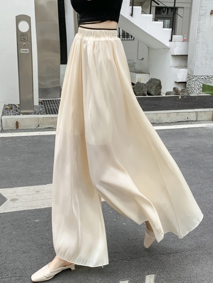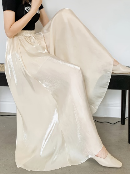 Solid Wide Leg Elastic Waist Pants, Casual Loose Pants For Summer & Spring, Women's Clothing