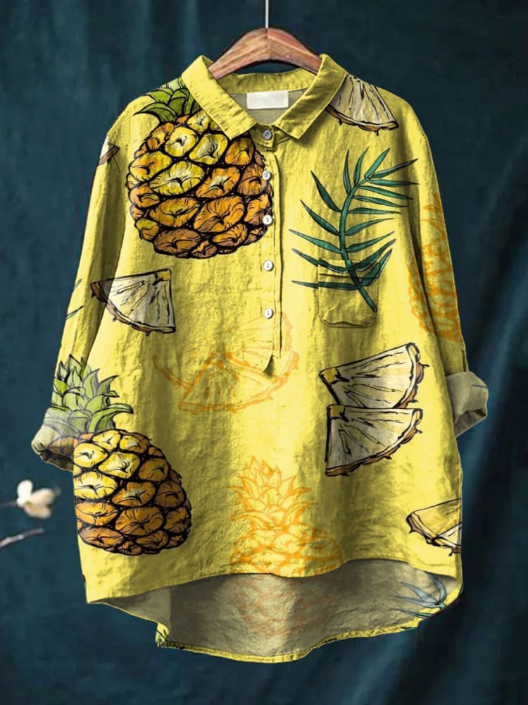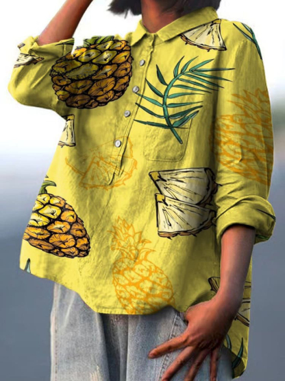Summer Pineapple Decorative Pattern Casual Cotton And Linen Shirt