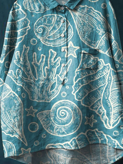 Vintage Lovely Ocean Life Art Print Casual Cotton And Linen Shirt