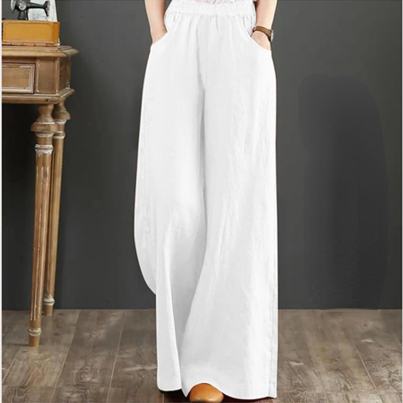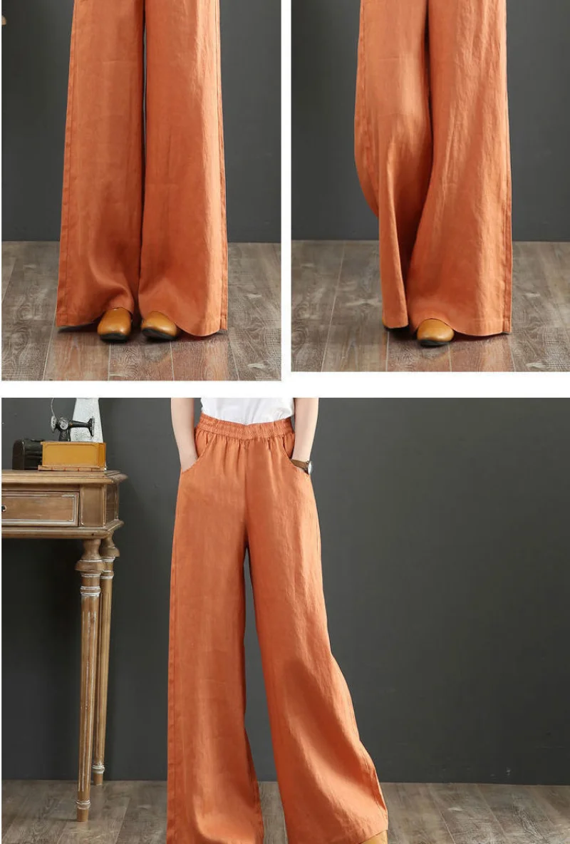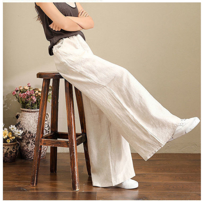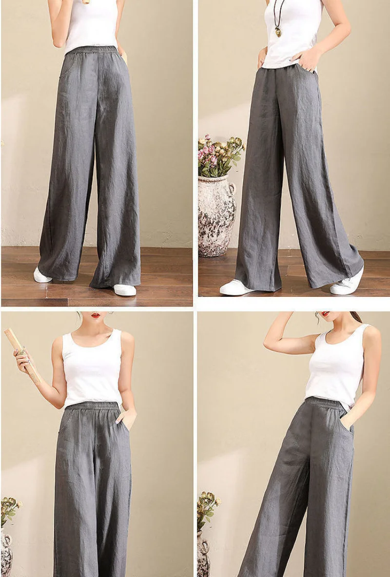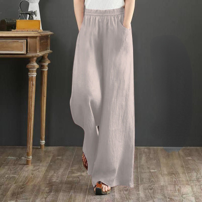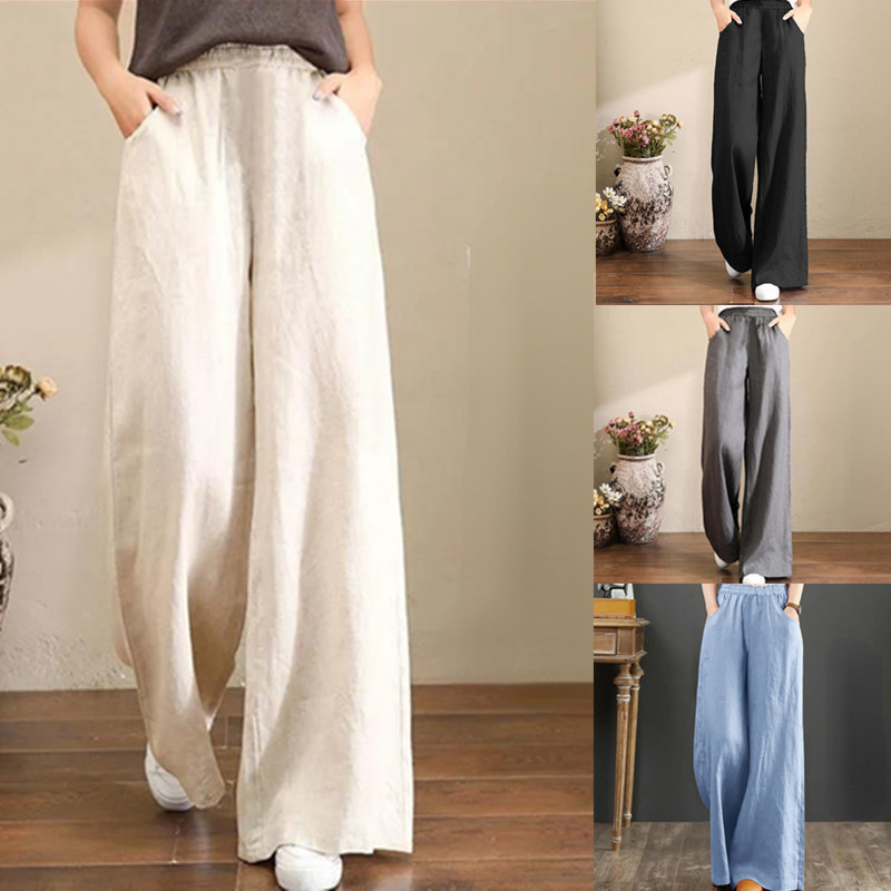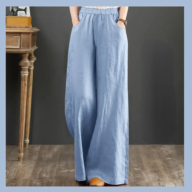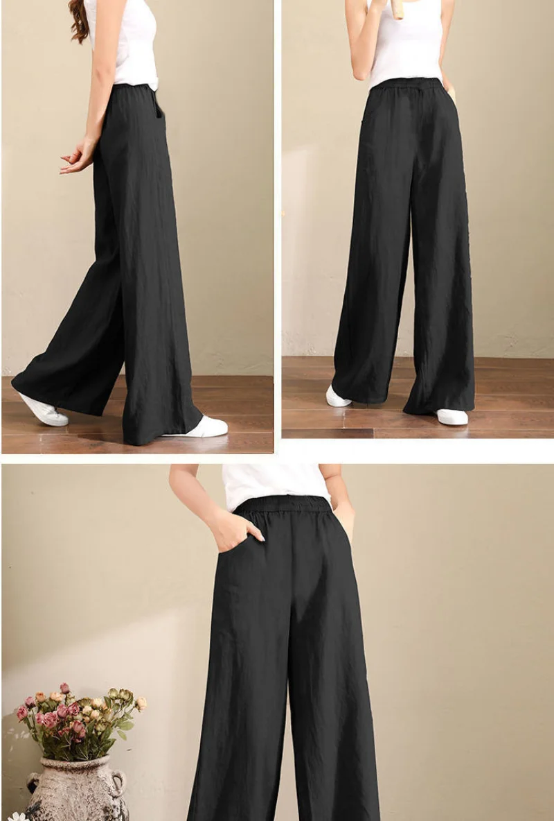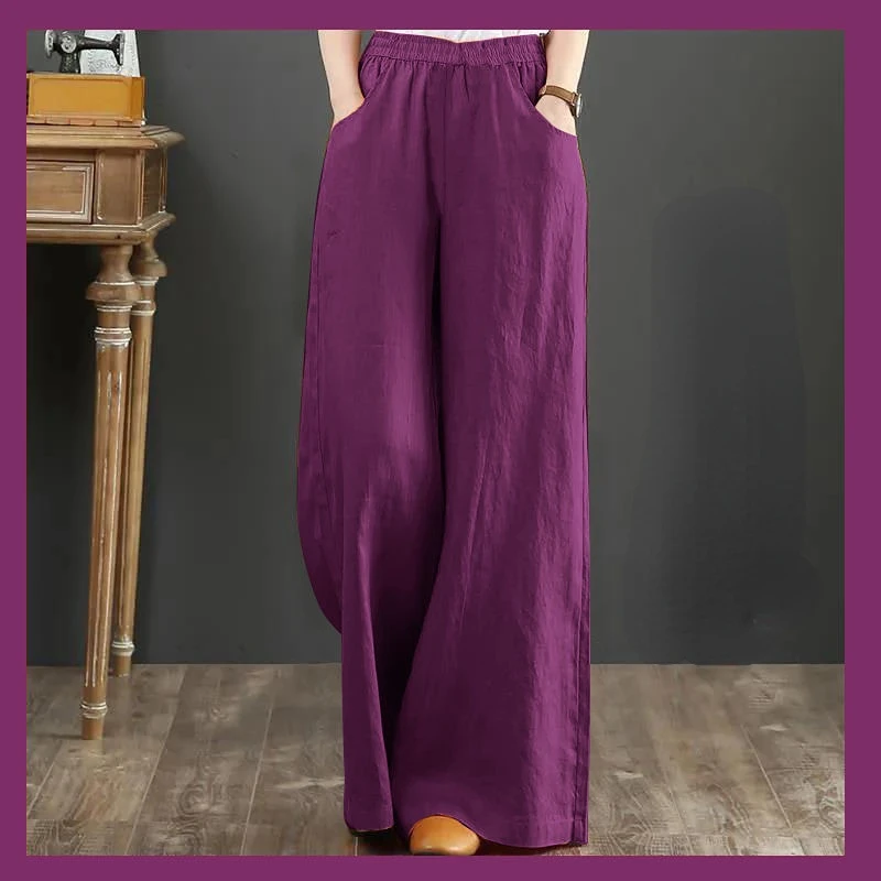 Women's Casual Stretch Waist Pockets Retro Loose Straight Leg Wide Leg Pants