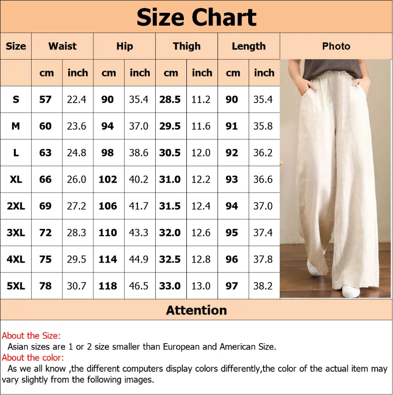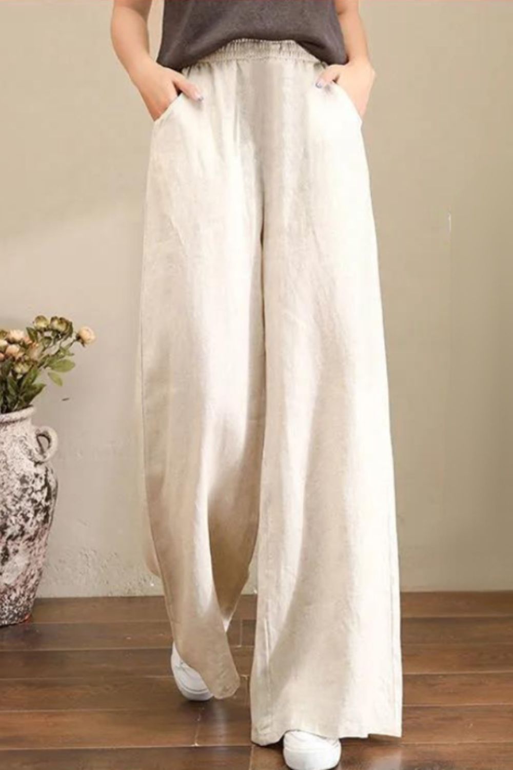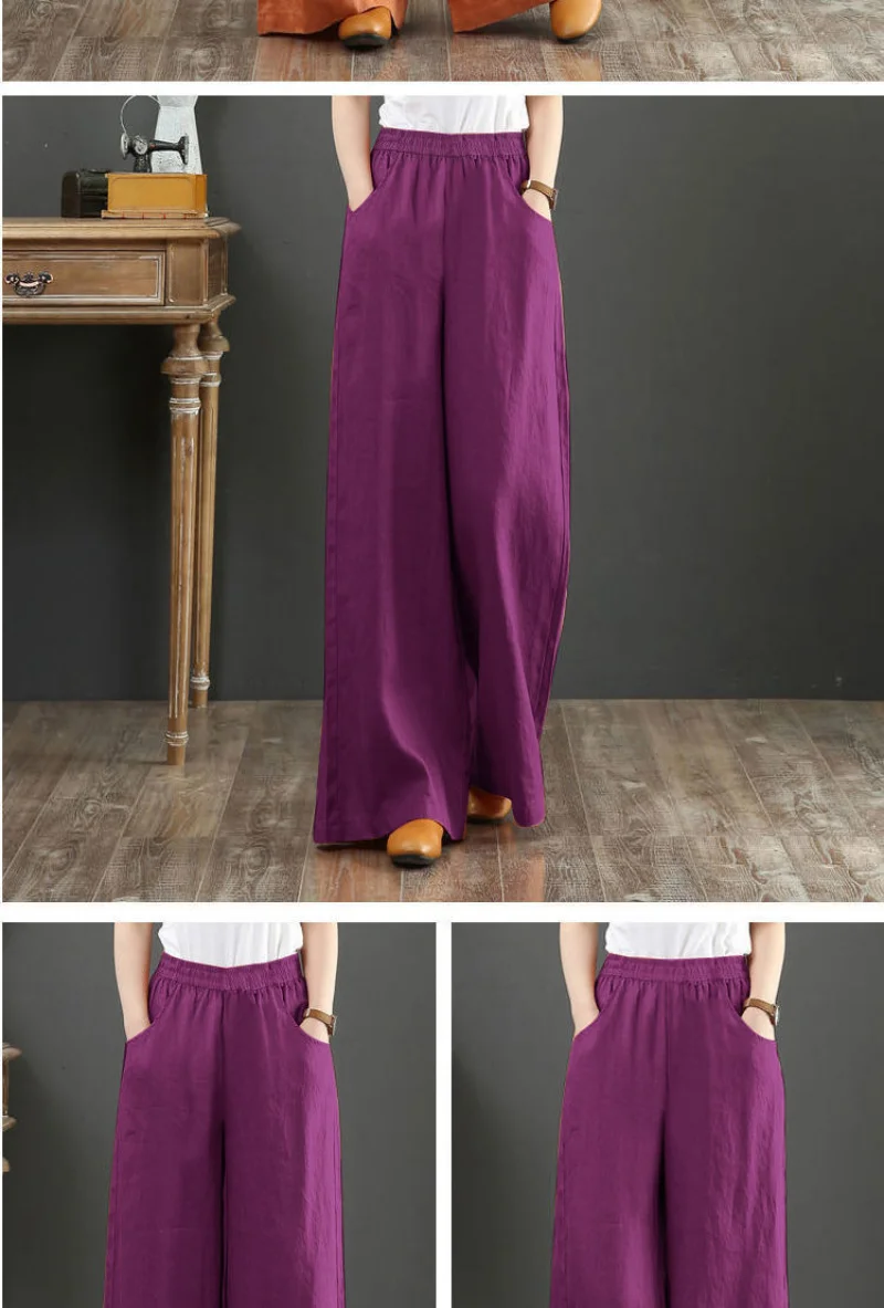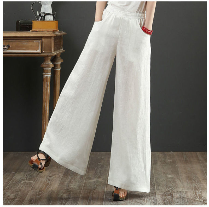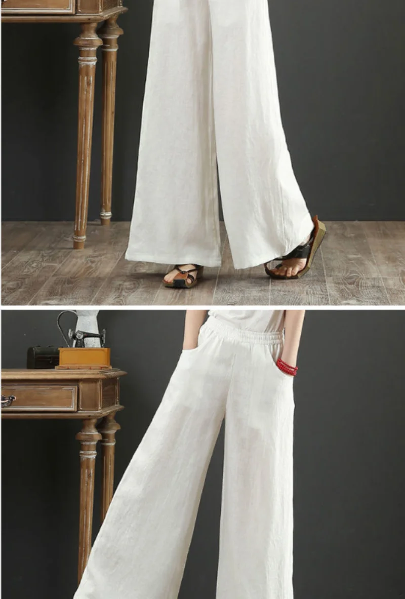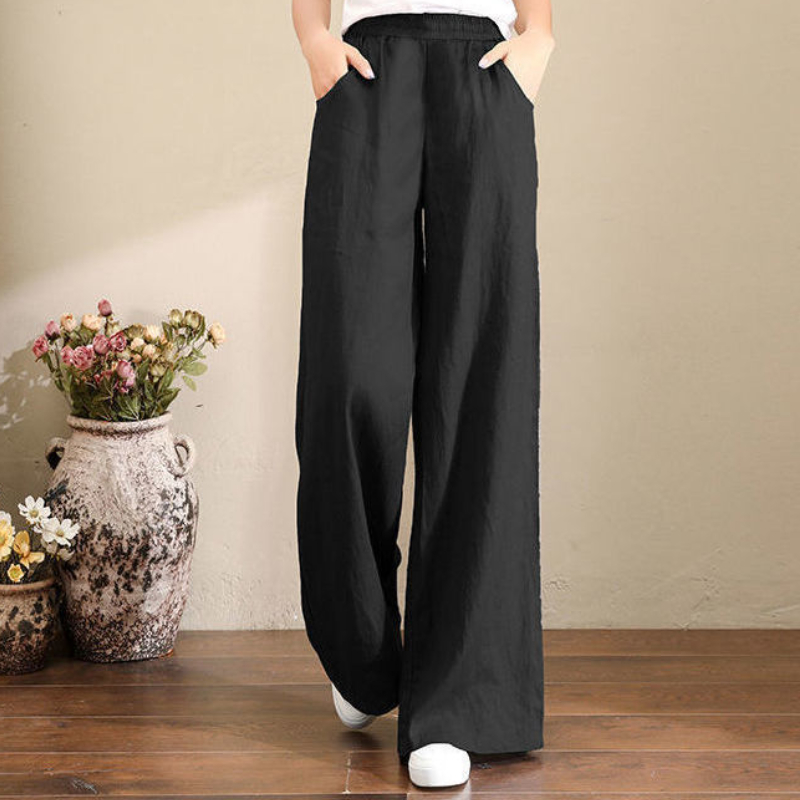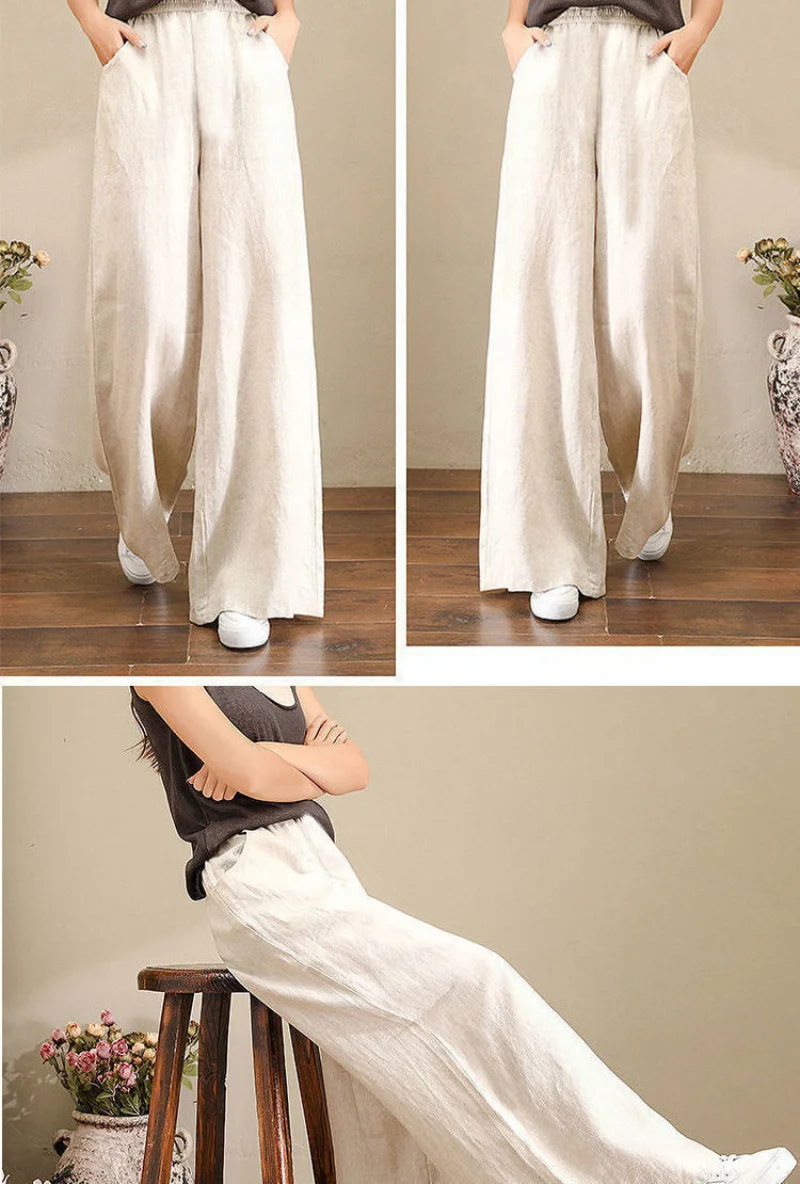 Women's Casual Stretch Waist Pockets Retro Loose Straight Leg Wide Leg Pants